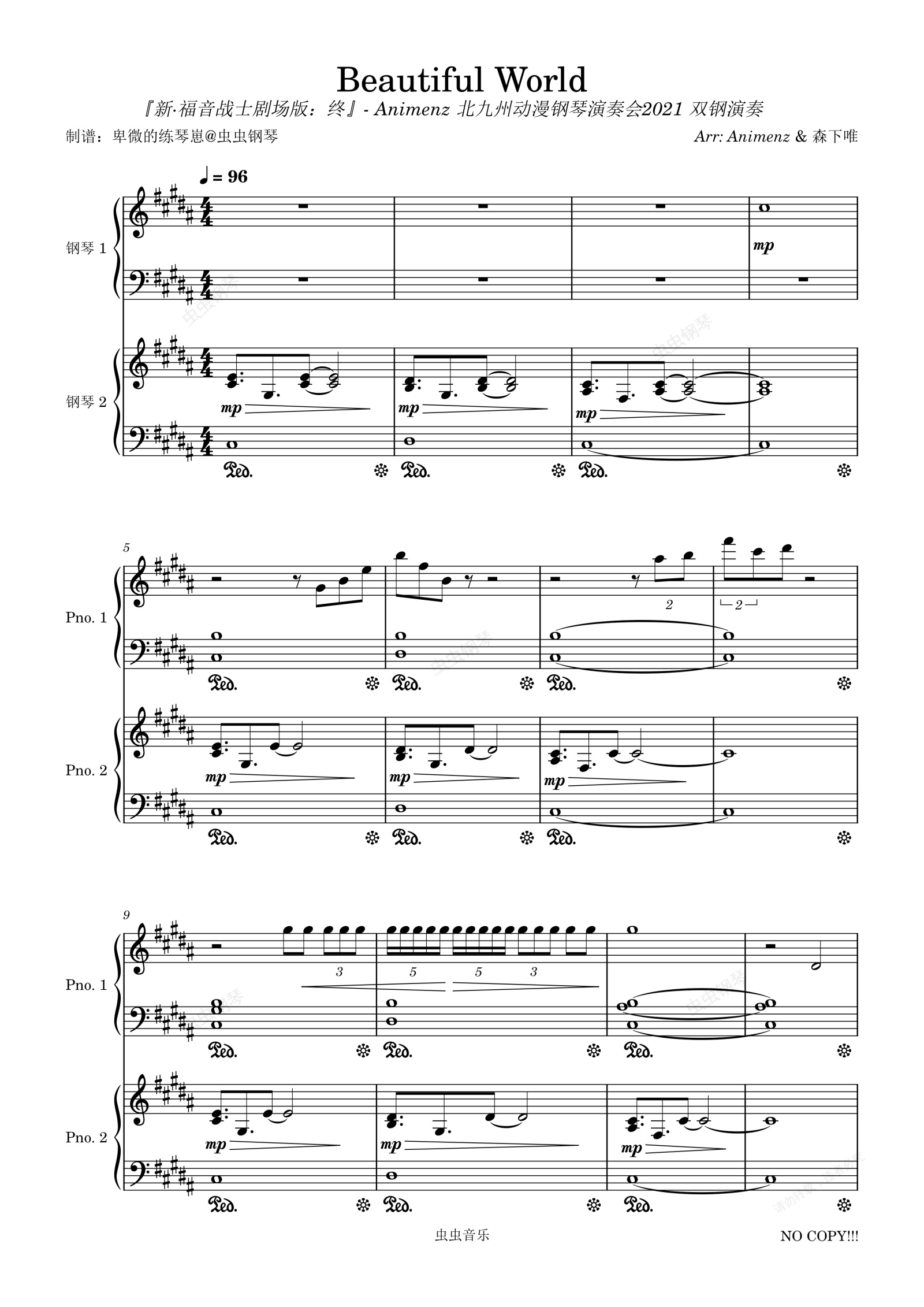 钢琴谱:[Animenz &森下唯] - Beautiful World 『新·福音战士剧场版:终』- Animenz 北九州动漫钢琴演奏会2021 双钢演奏