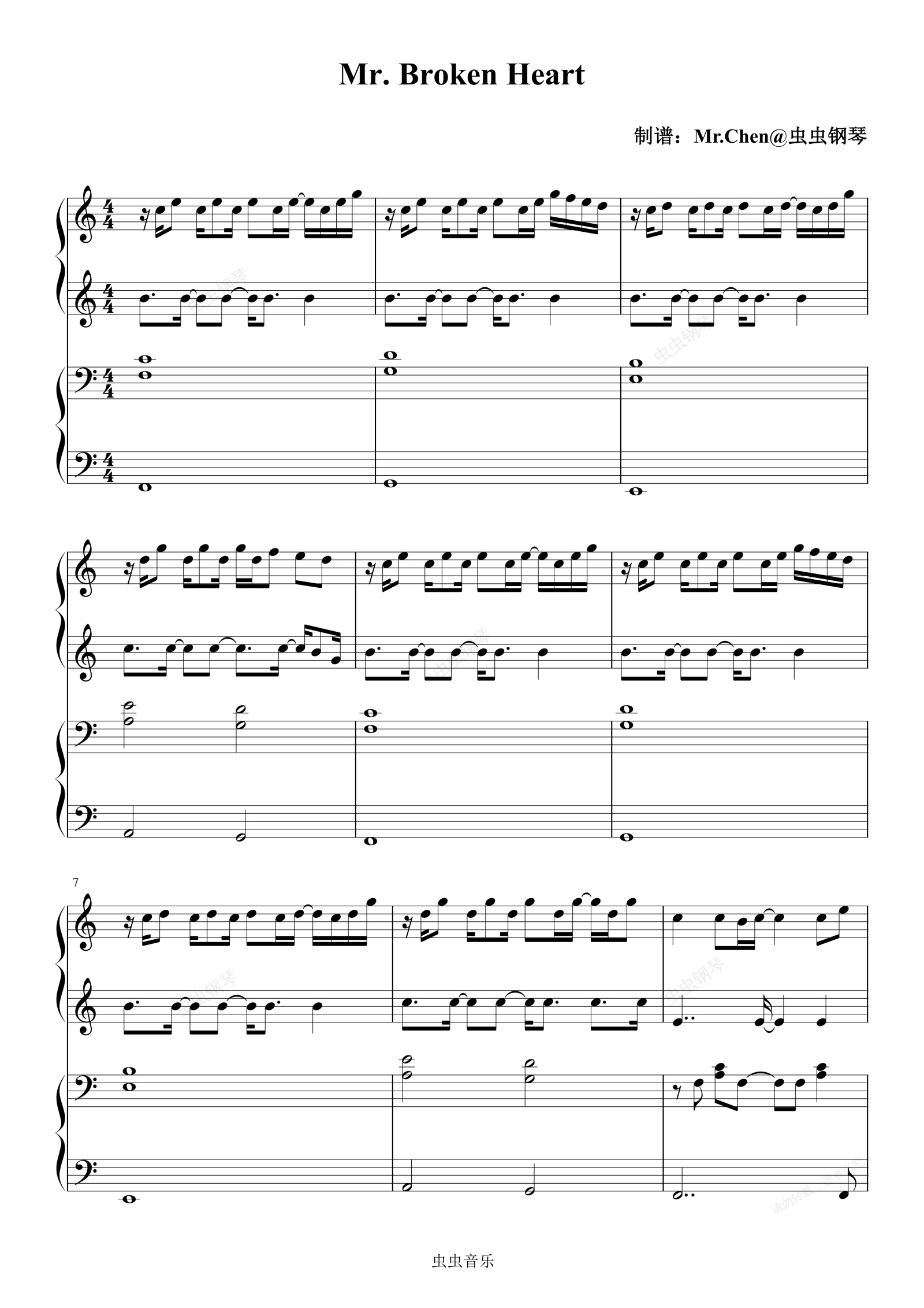 钢琴谱:Mr. Broken Heart (四手联弹)C调 - 松下优也