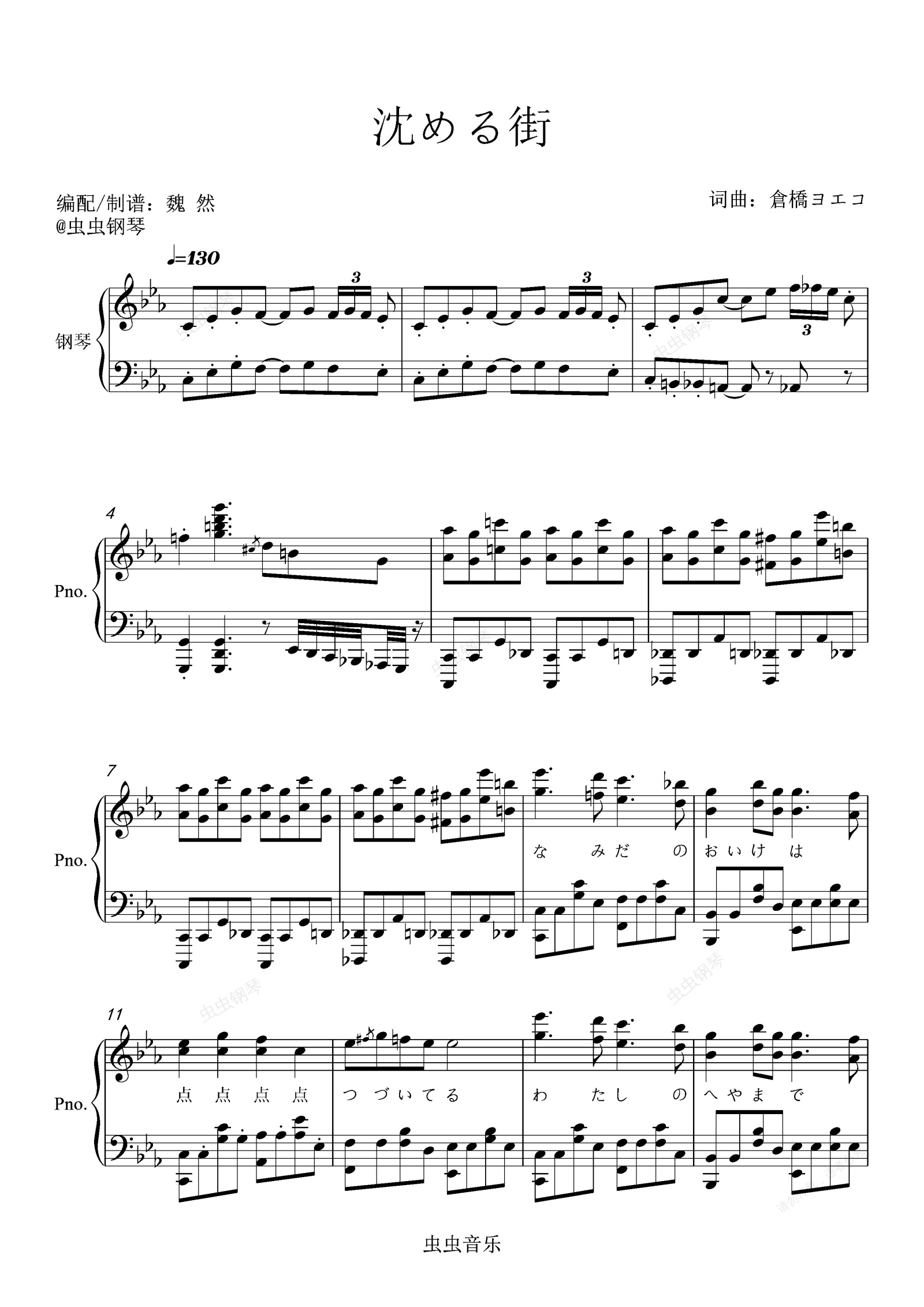 钢琴谱:沈める街(高燃钢琴)——『忧伤歌声』