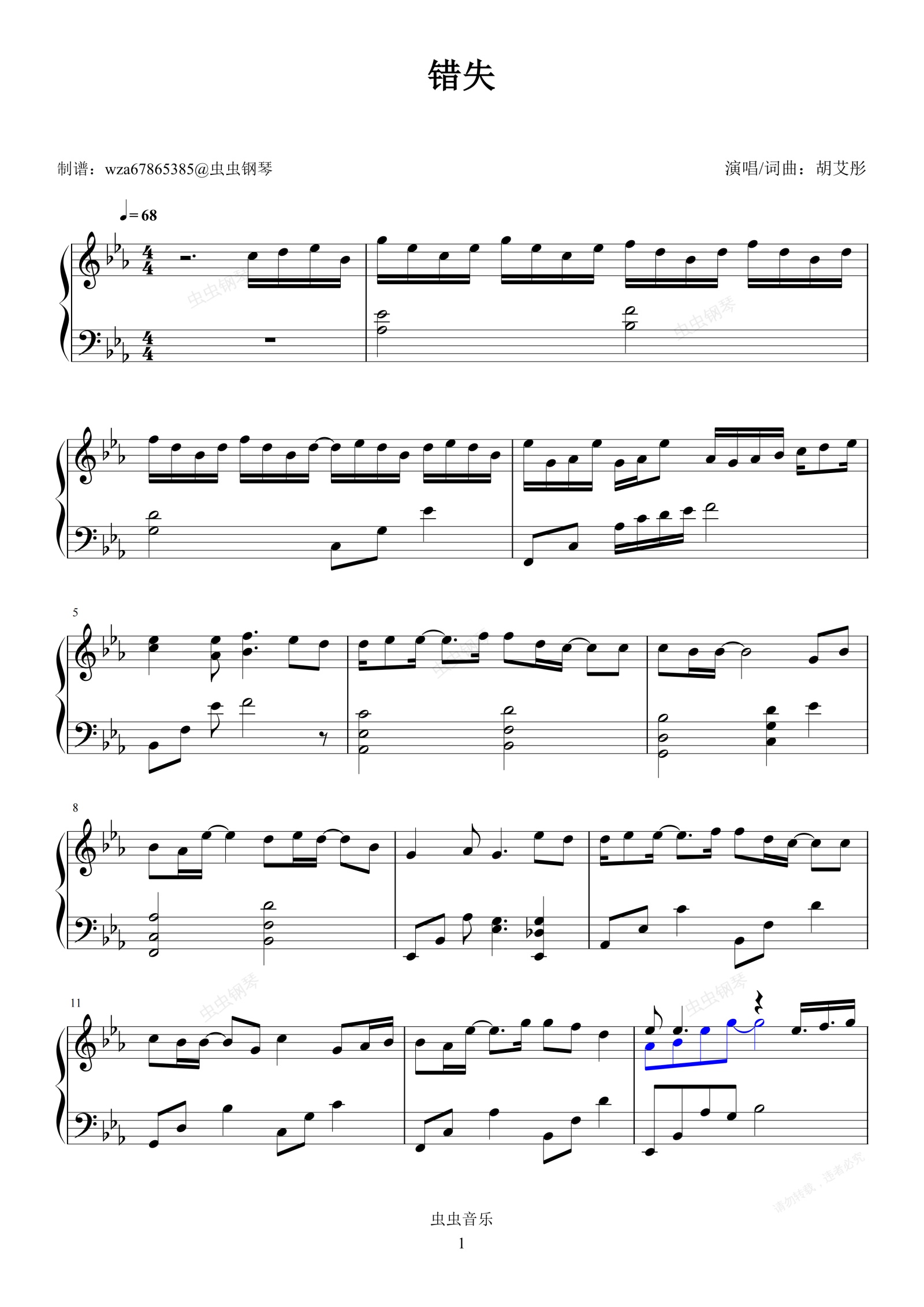 钢琴谱:错失