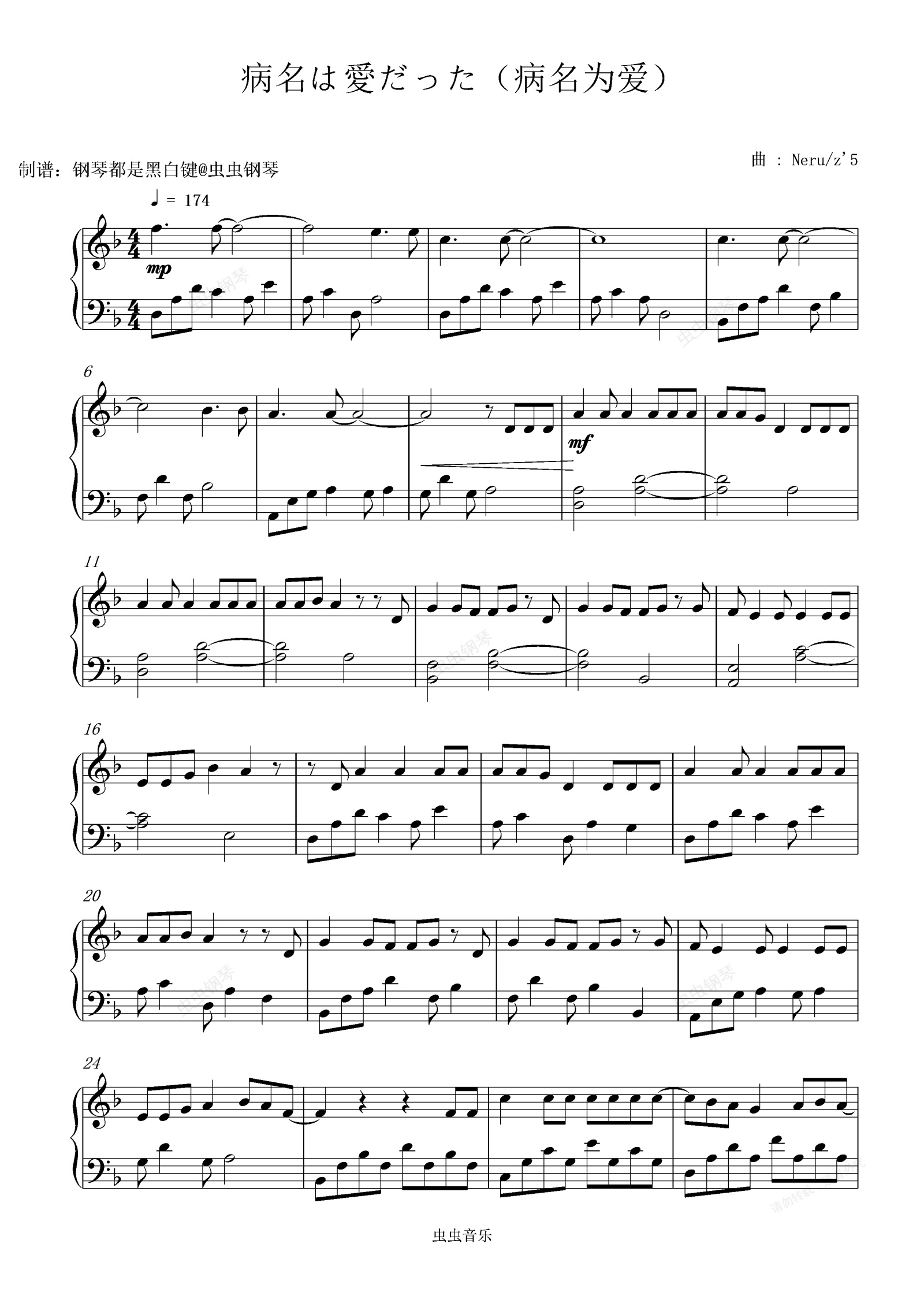 钢琴谱:[ 鏡音レン]病名は愛だった /病名为爱