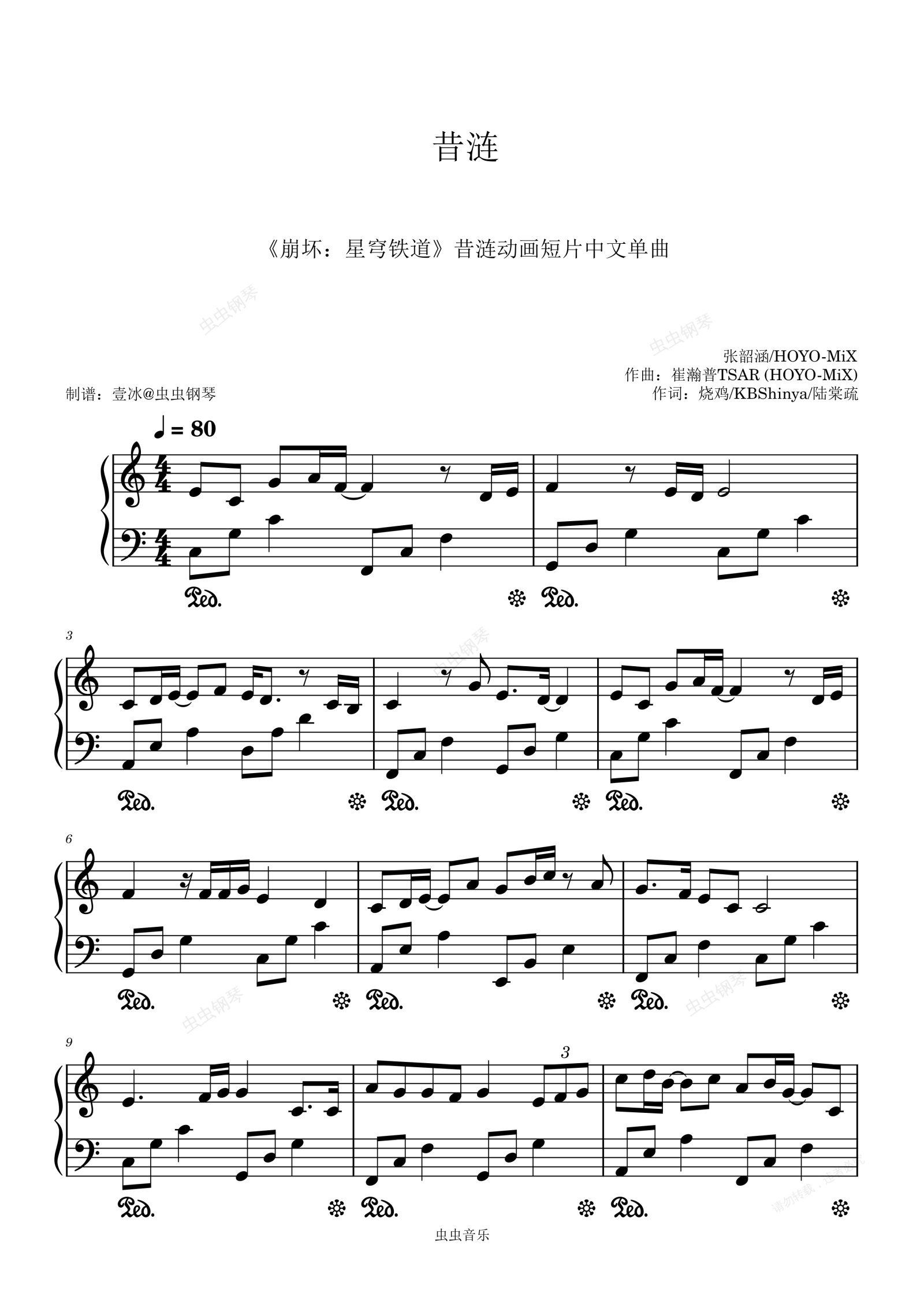钢琴谱:昔涟 (《崩坏:星穹铁道》昔涟动画短片中文单曲) - C调
