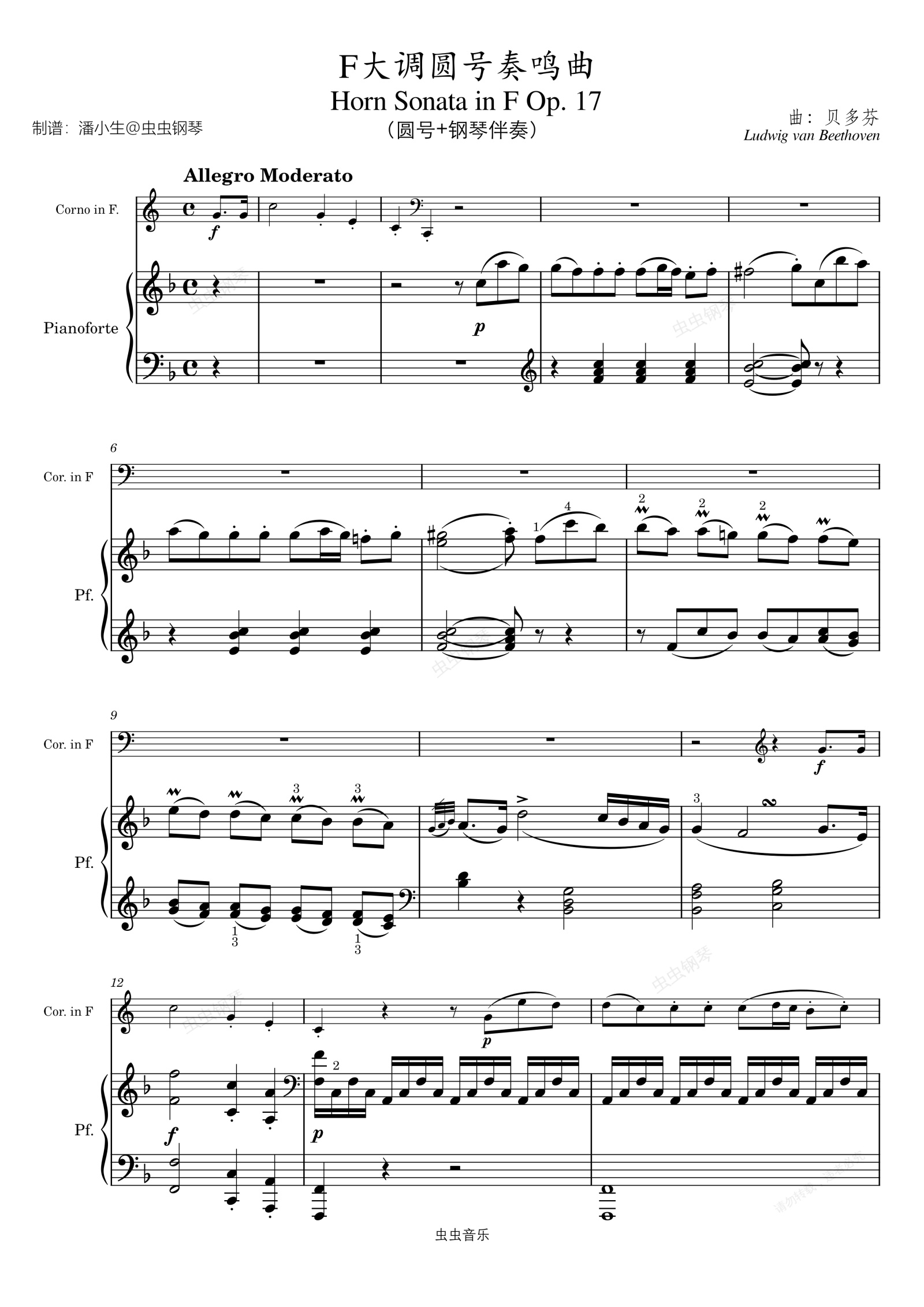 贝多芬 F大调圆号奏鸣曲 Op.17 原版 圆号+钢琴伴奏 完整版 Horn, in F Major;