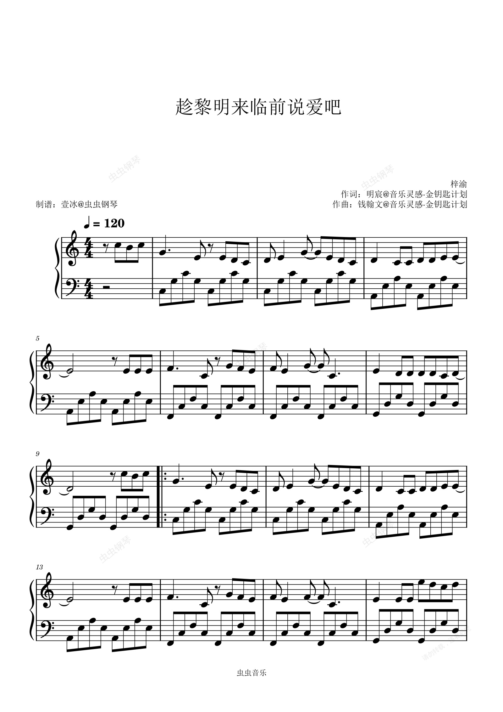 钢琴谱:趁黎明来临前说爱吧 - 梓渝