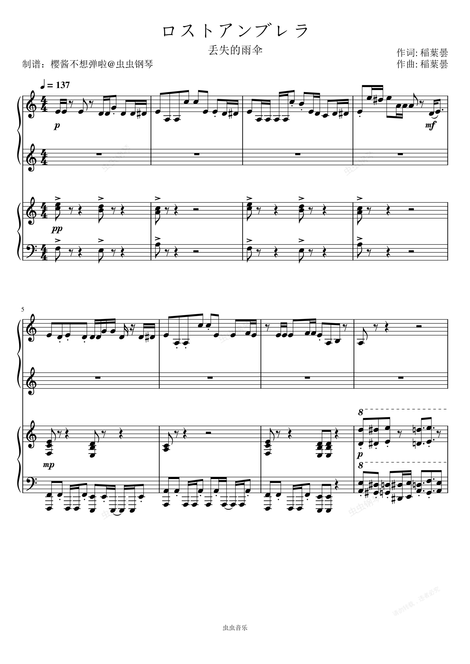钢琴谱:ロストアンブレラ (丢失的雨伞) 稲葉曇/歌愛ユキ