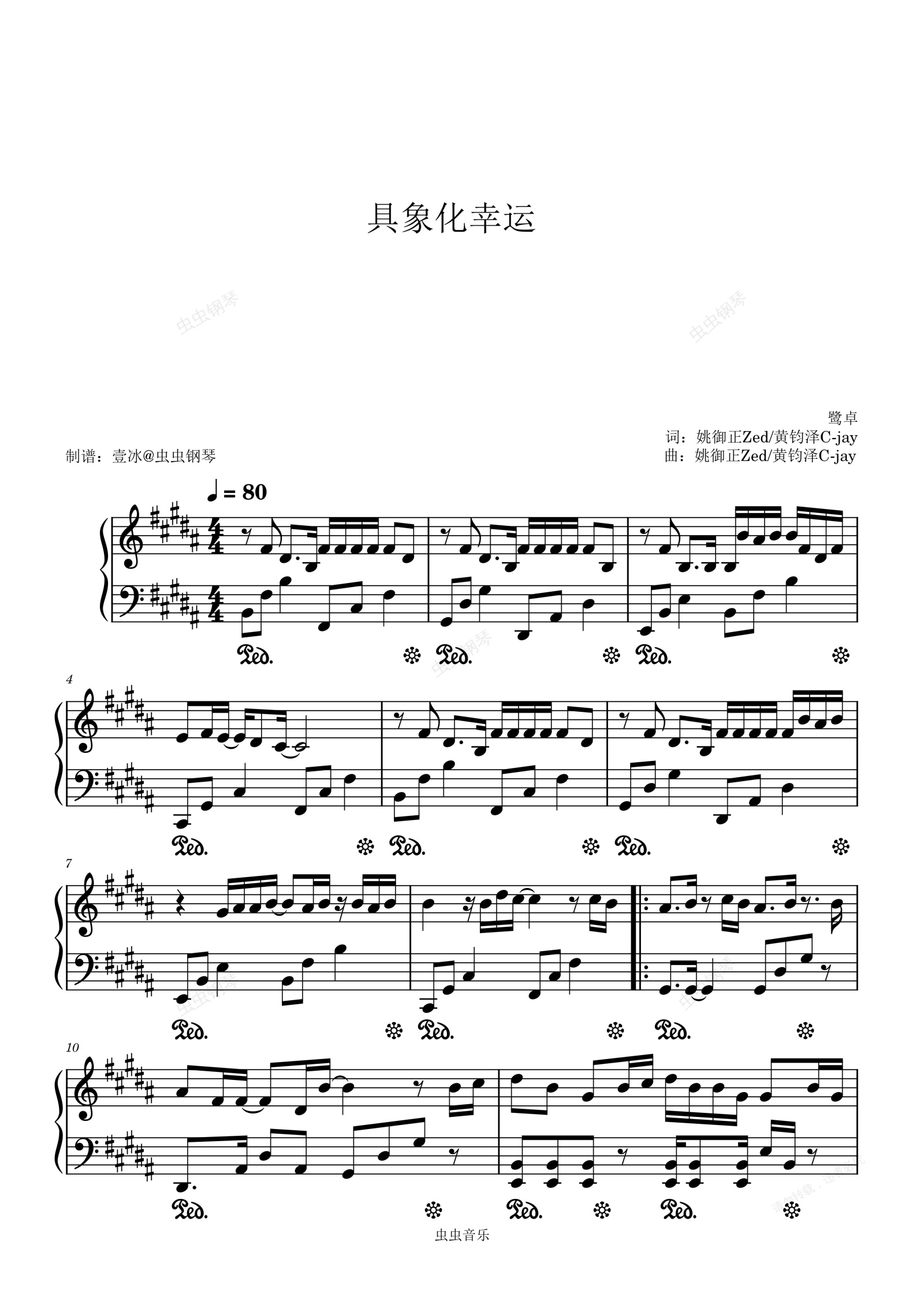 钢琴谱:具象化幸运 - 鹭卓 原调
