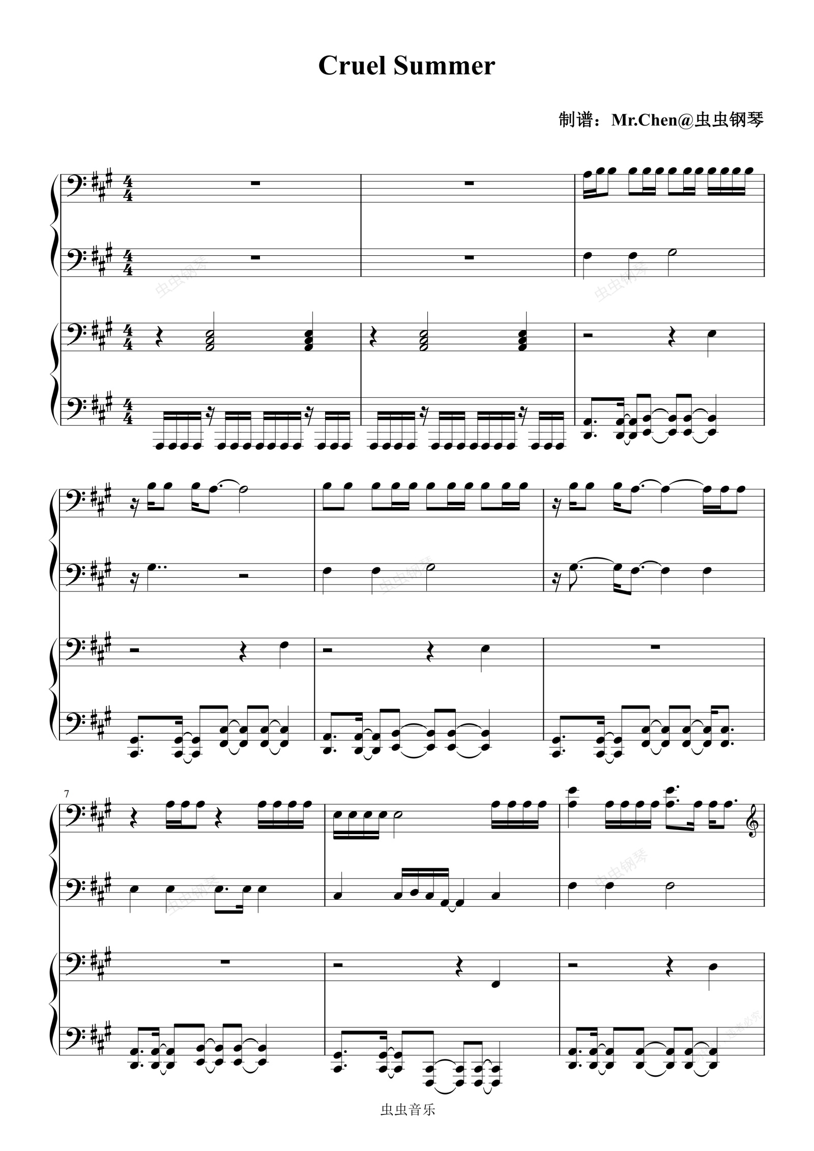 钢琴谱:Cruel Summer (四手联弹)- Taylor Swift