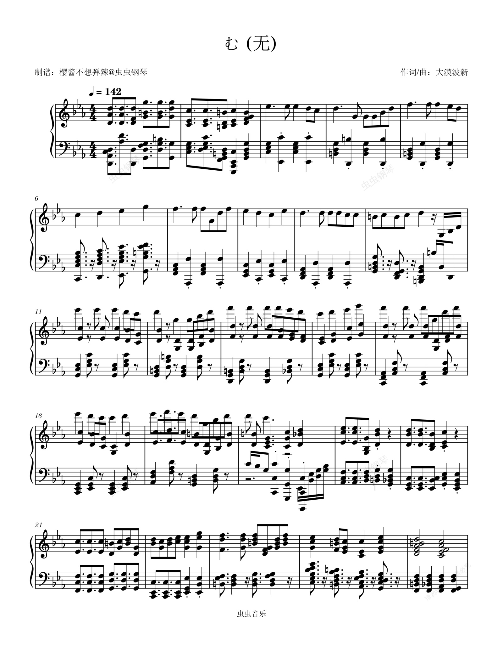 钢琴谱:む (无) 大漠波新/重音テト/足立レイ