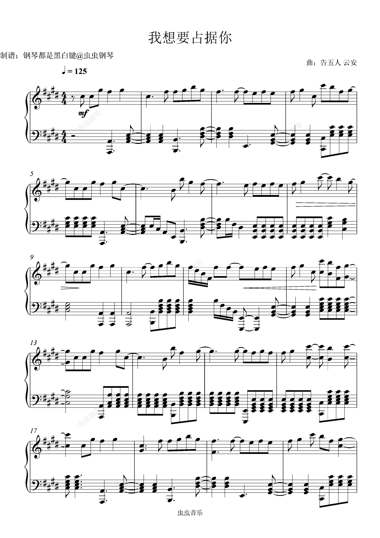 钢琴谱:告五人《我想要占据你》钢琴演奏版