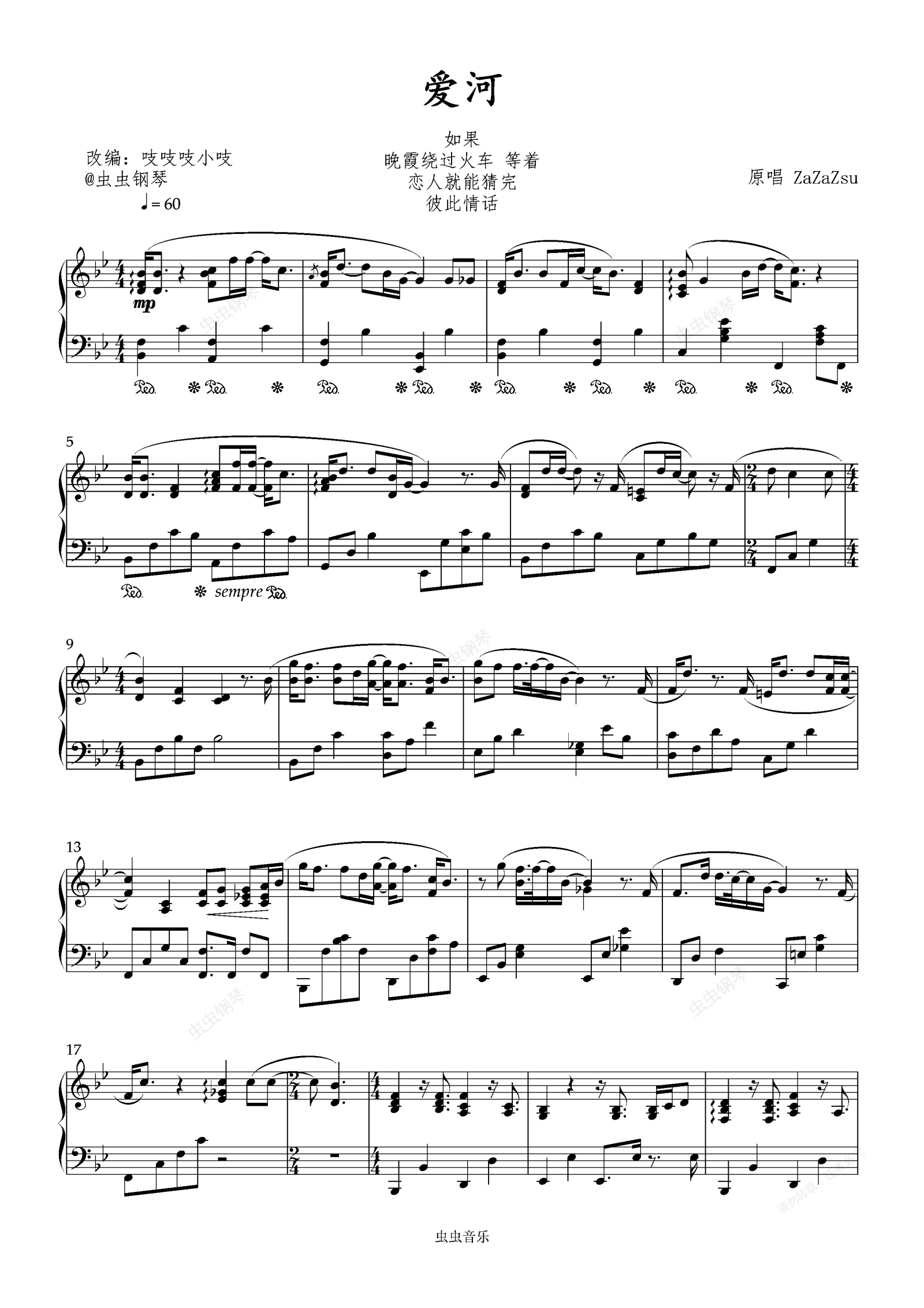 钢琴谱:爱河 「浪漫」ZaZaZsu咂咂苏 原调演奏 吱吱编配