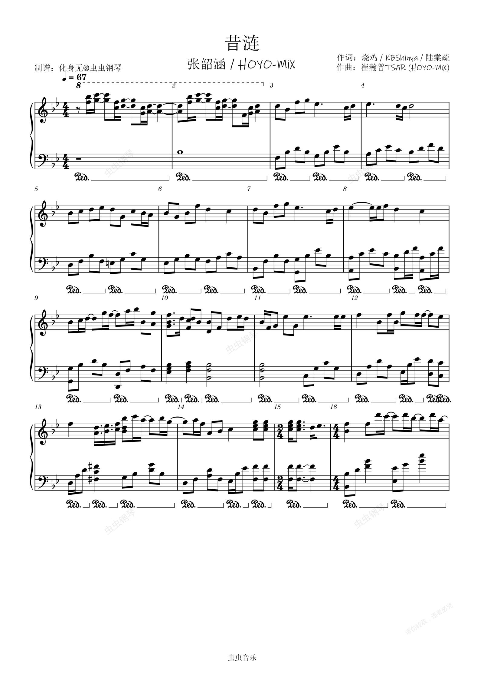 钢琴谱:昔涟 崩坏星穹铁道 原调独奏版 化身无编配