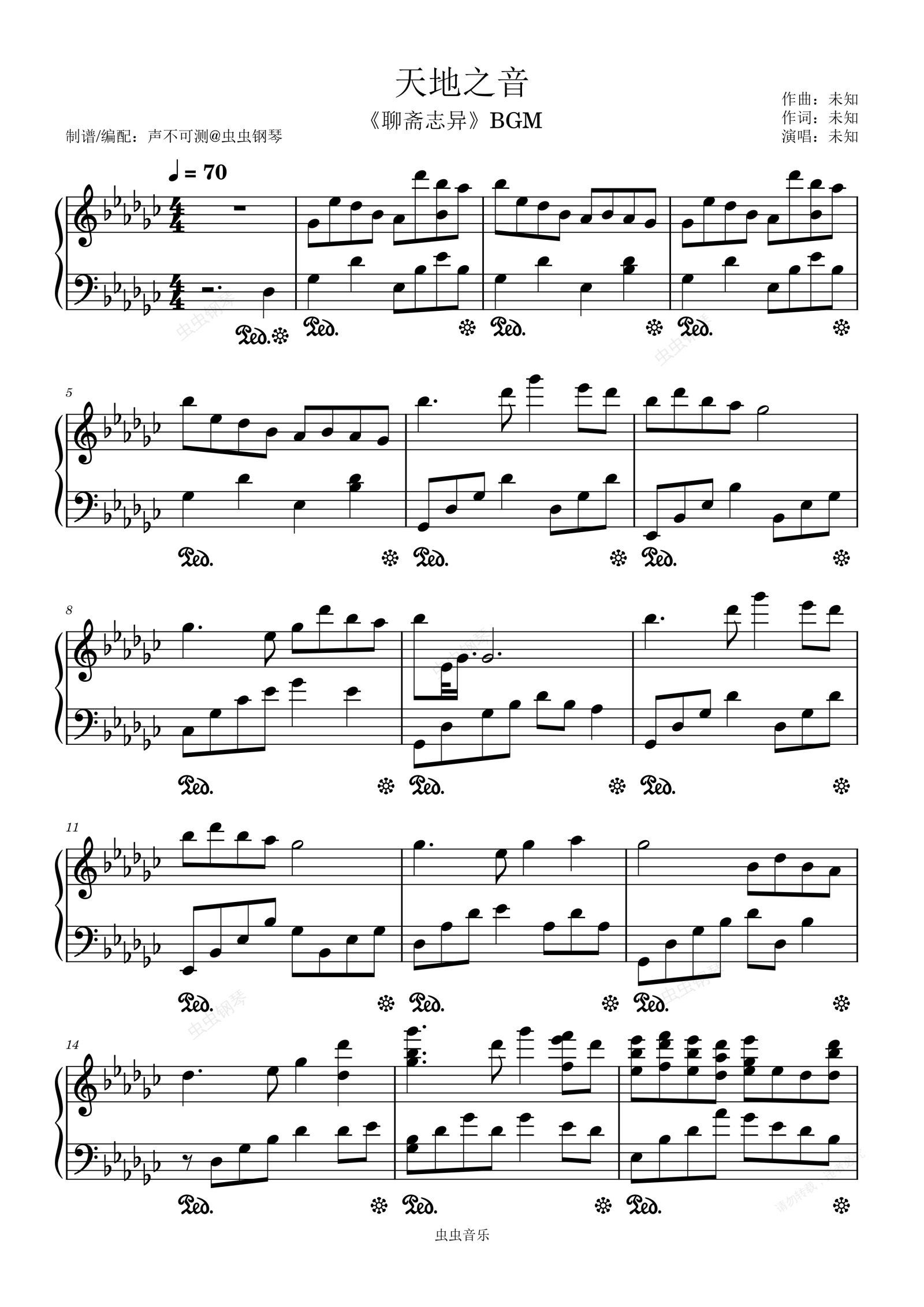 钢琴谱:天地之音《聊斋志异》BGM - 声不可测