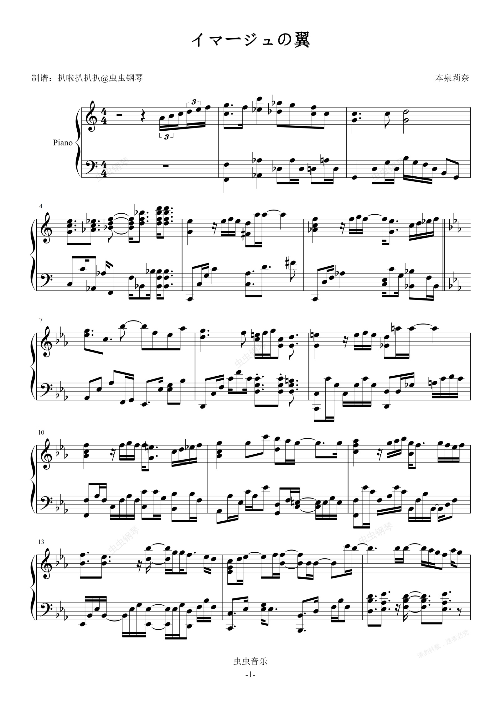 钢琴谱:《イマージュの翼》-本泉莉奈-钢琴演奏谱
