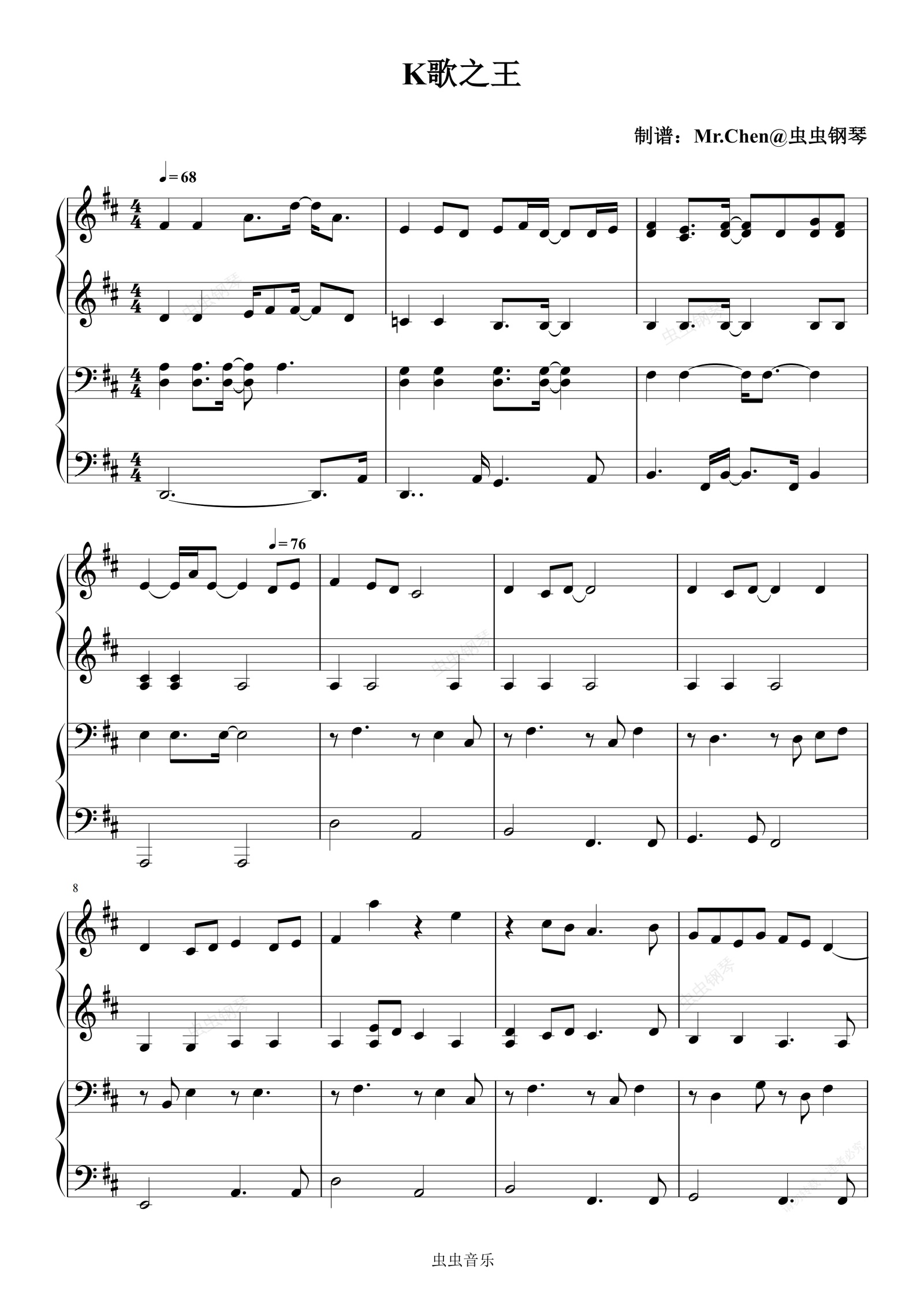 钢琴谱:K歌之王 (四手联弹)- 陈奕迅