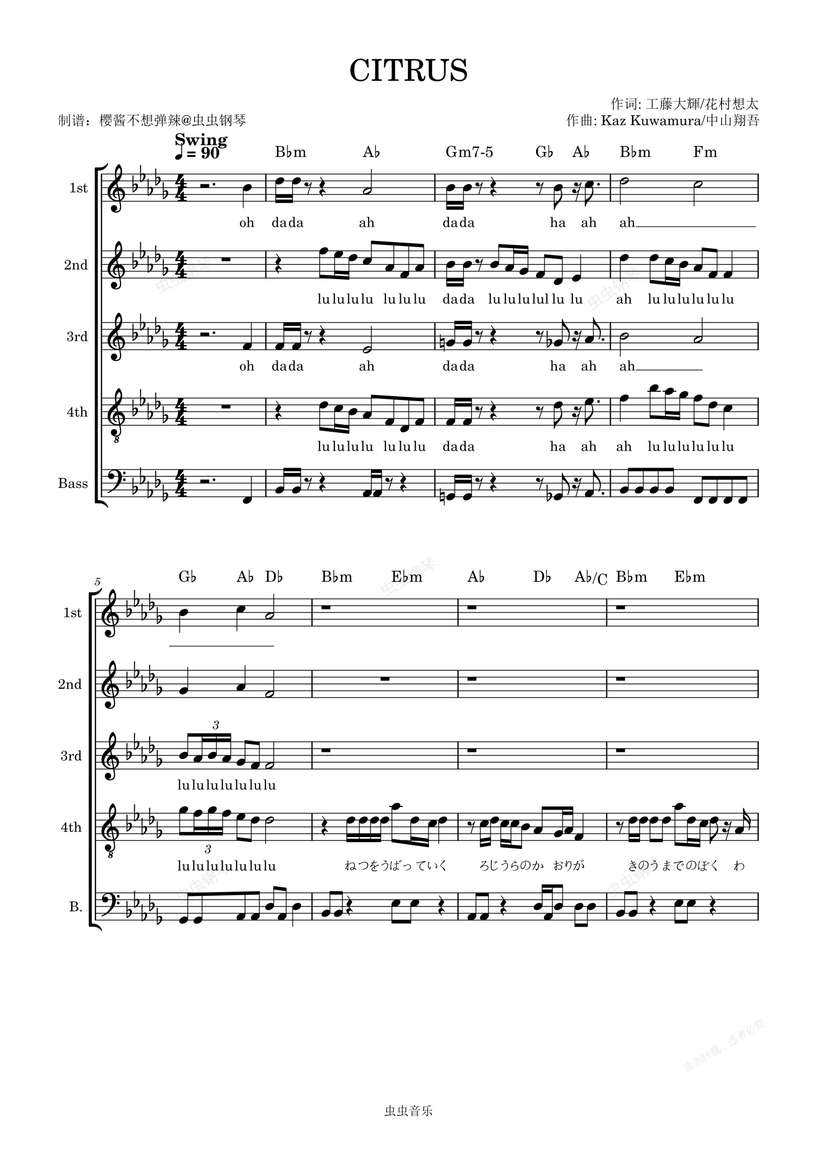 钢琴谱:CITRUS (日剧《极主夫道》主题曲)Da-iCE