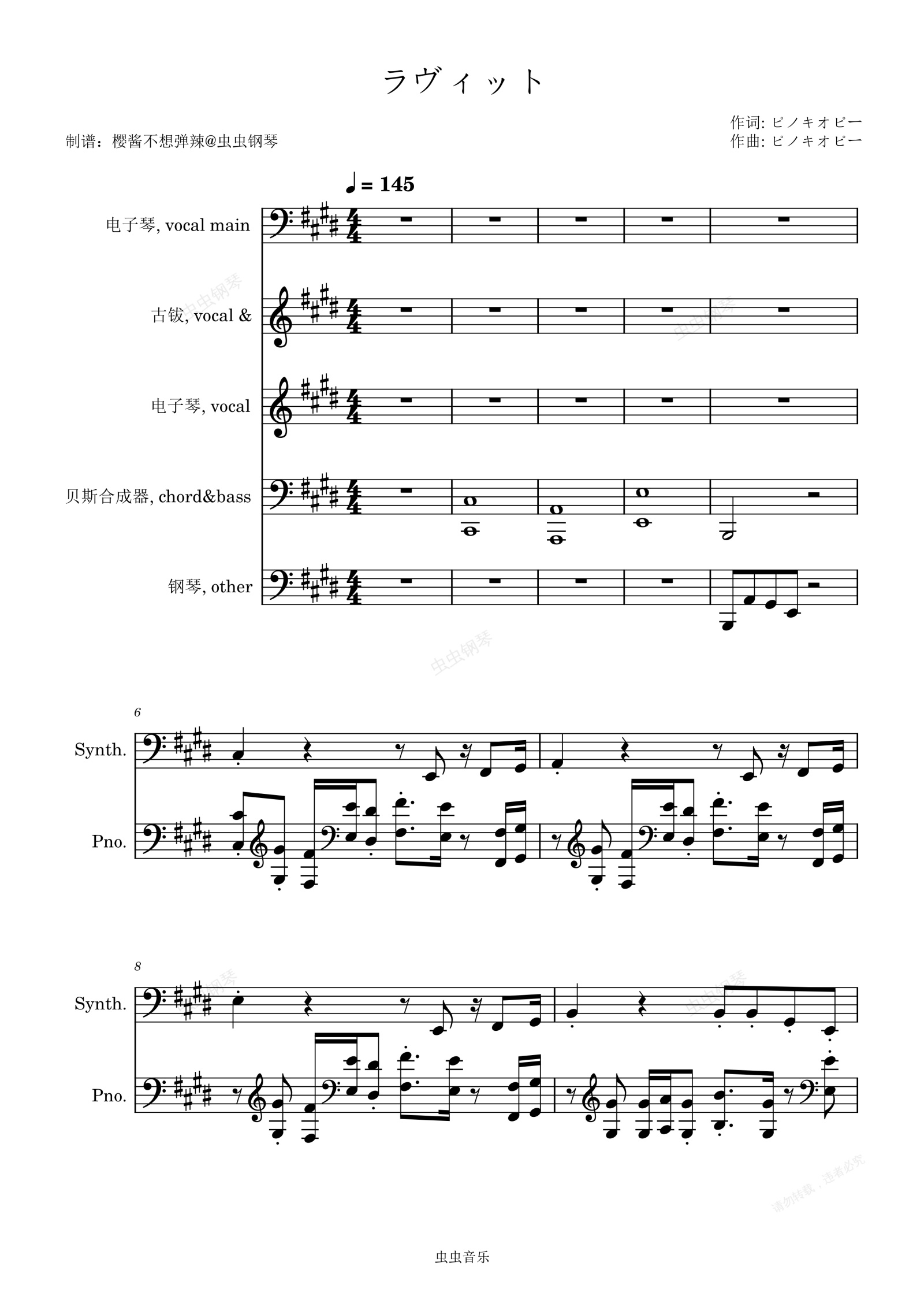 钢琴谱:ラヴィット (Loveit) ピノキオピー/初音ミク