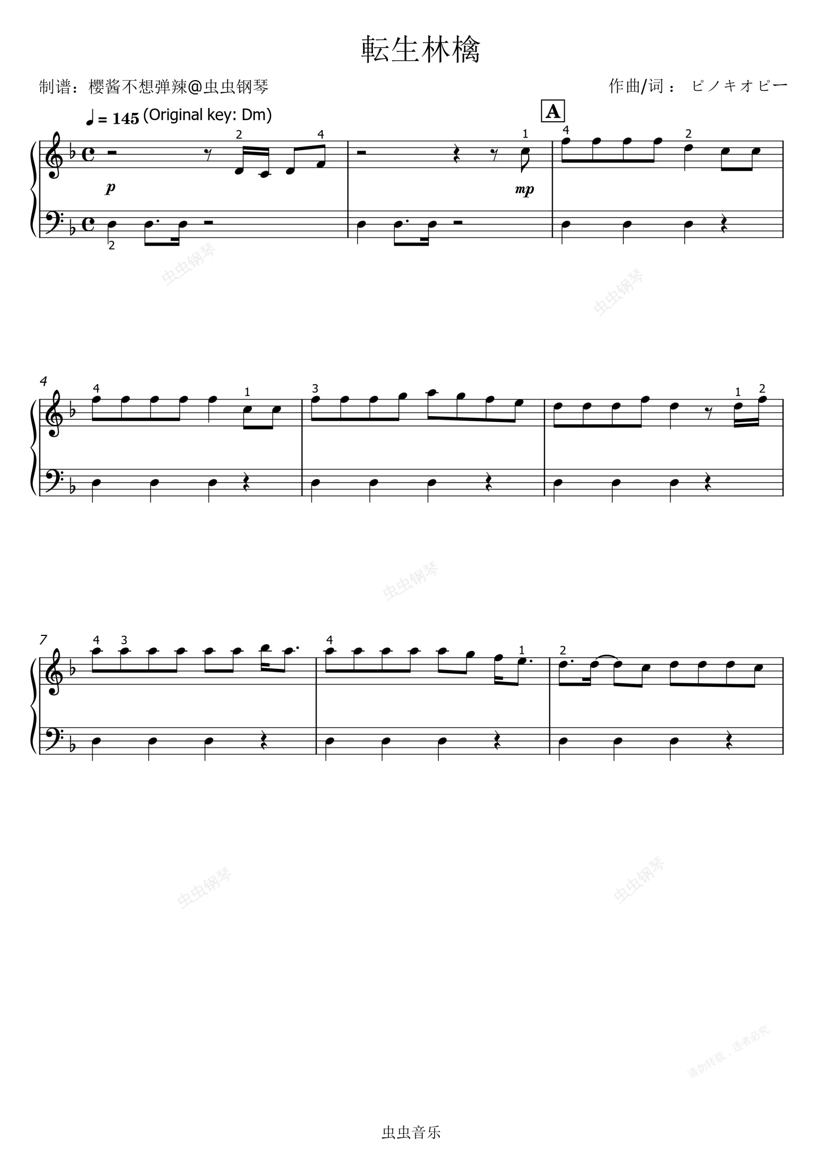 钢琴谱:転生林檎 (转生苹果/转生林檎) ピノキオピー/初音ミク