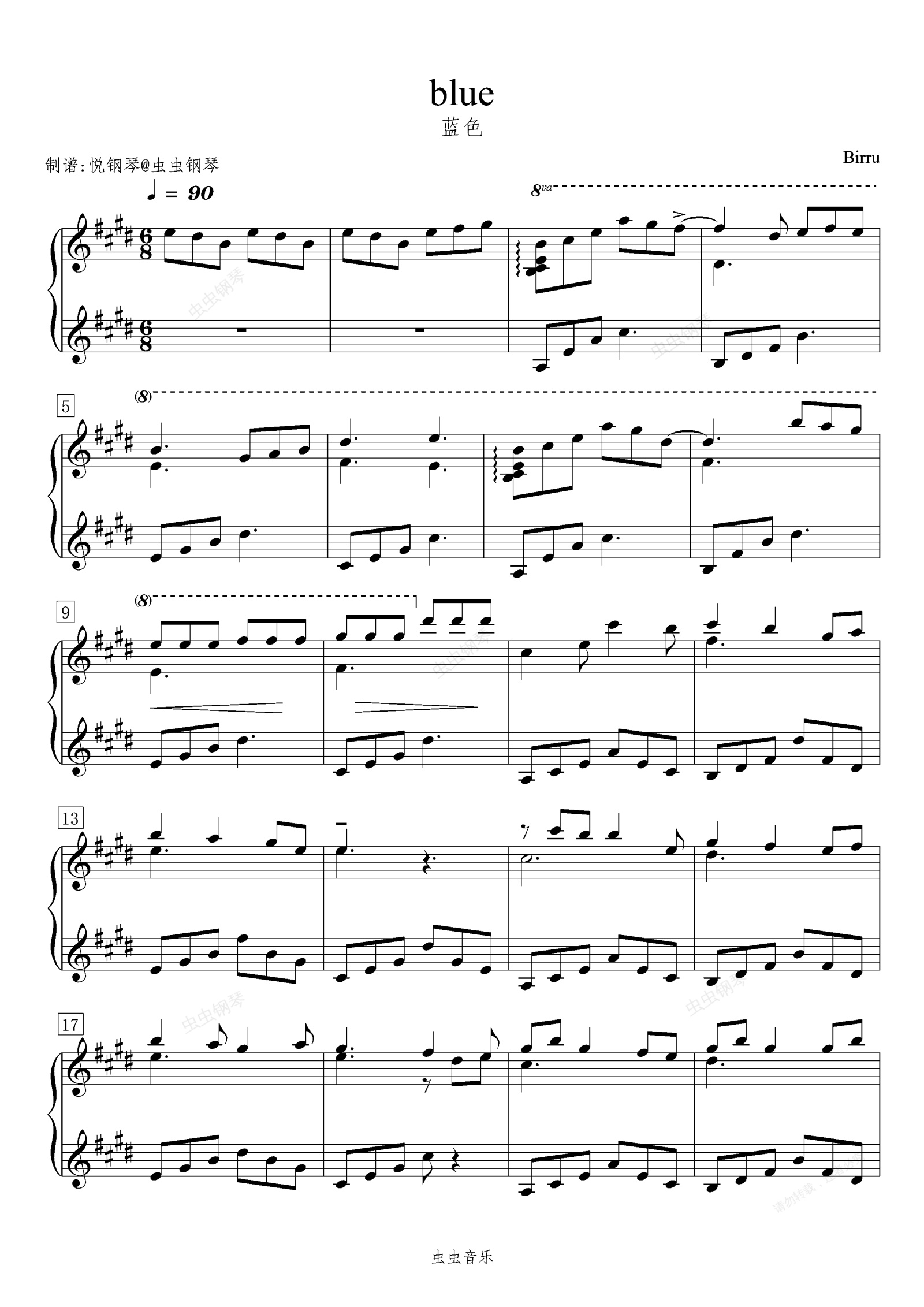 钢琴谱:蓝色/blue 【抒情】