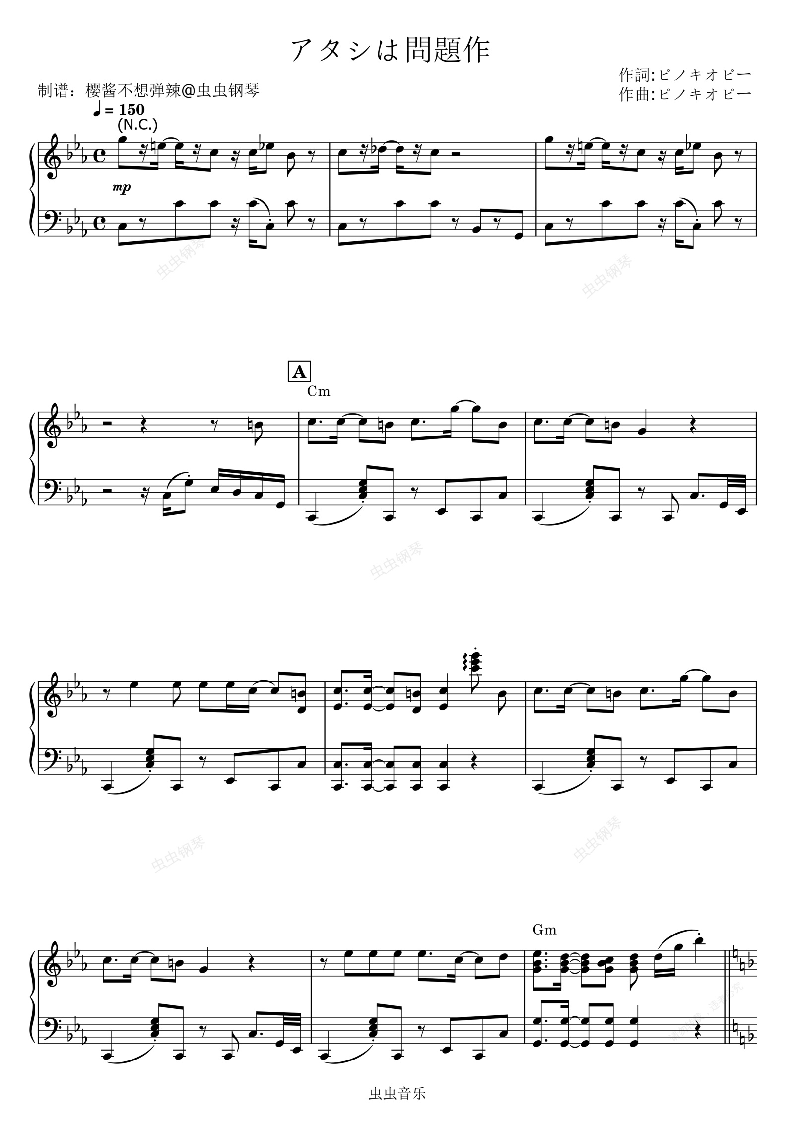 钢琴谱:アタシは問題作 (我是问题作) Ado