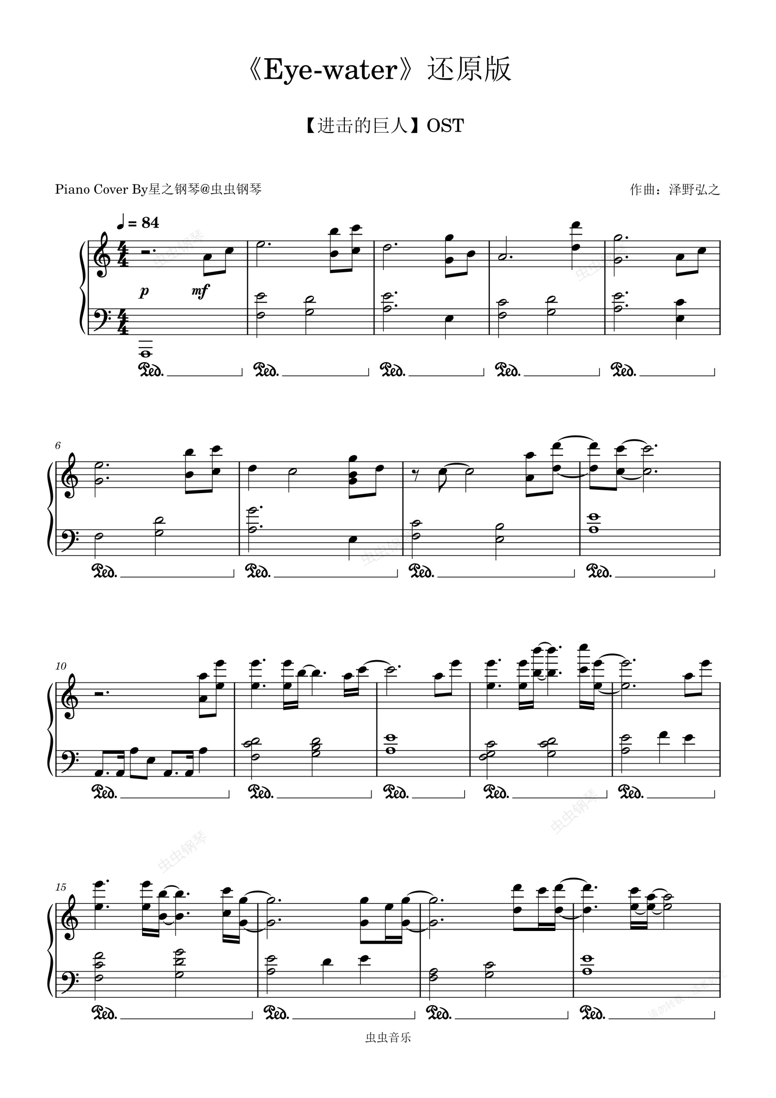 钢琴谱:【进击的巨人】《eye-water》钢琴还原版~星之钢琴~