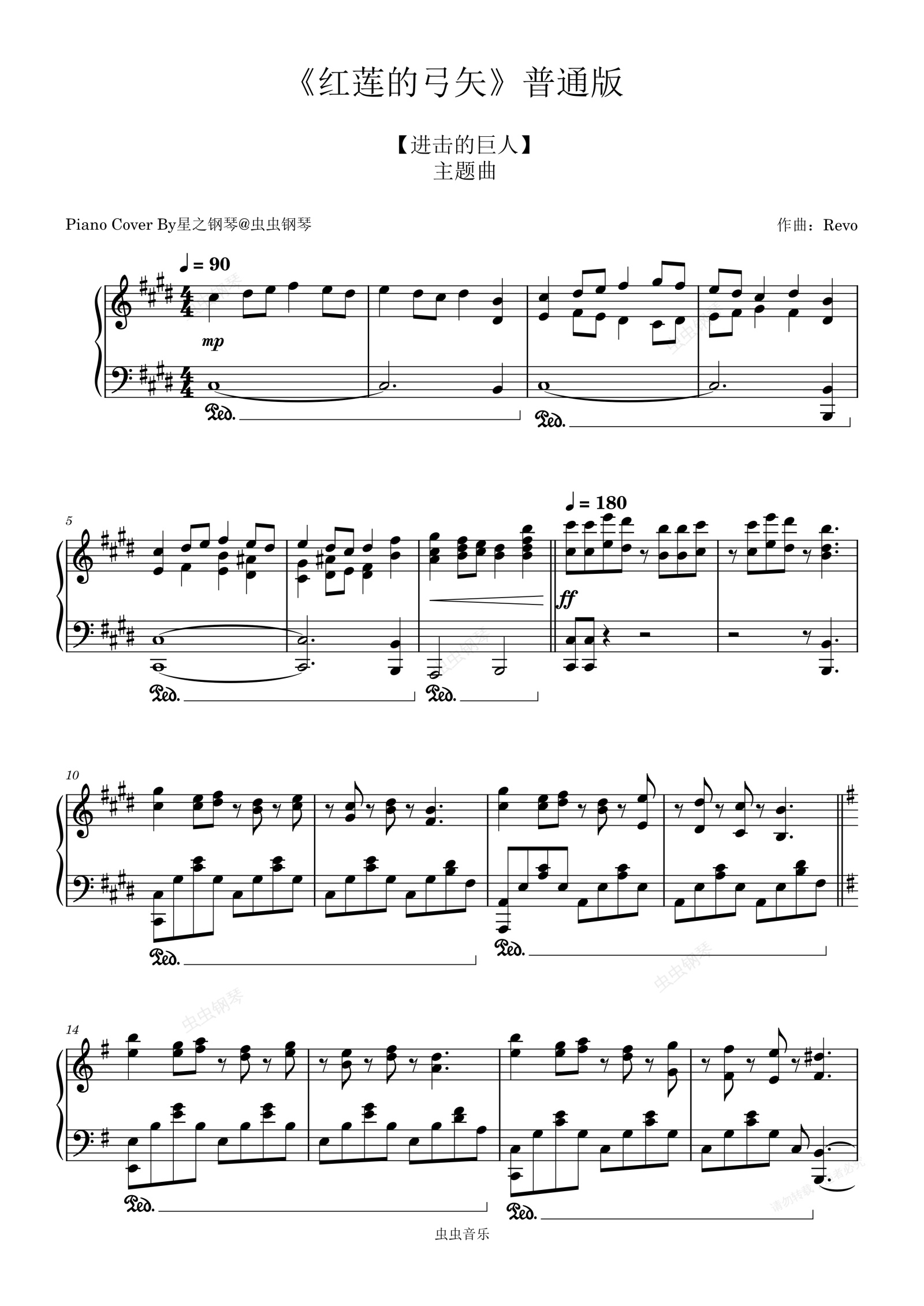 钢琴谱:【进击的巨人】《红莲的弓矢》普通独奏版~星之钢琴~
