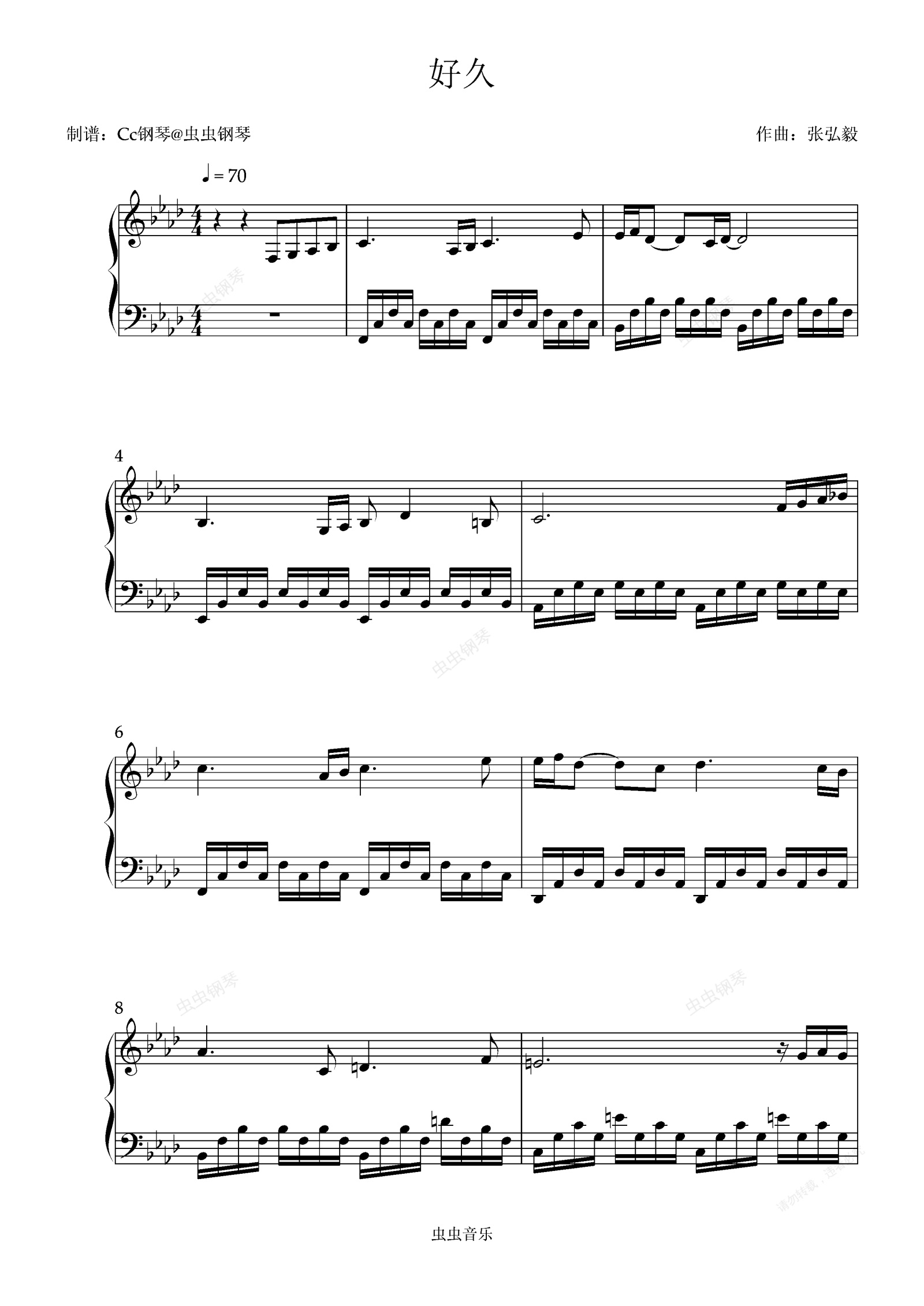 钢琴谱:好久 原调 好听易上手