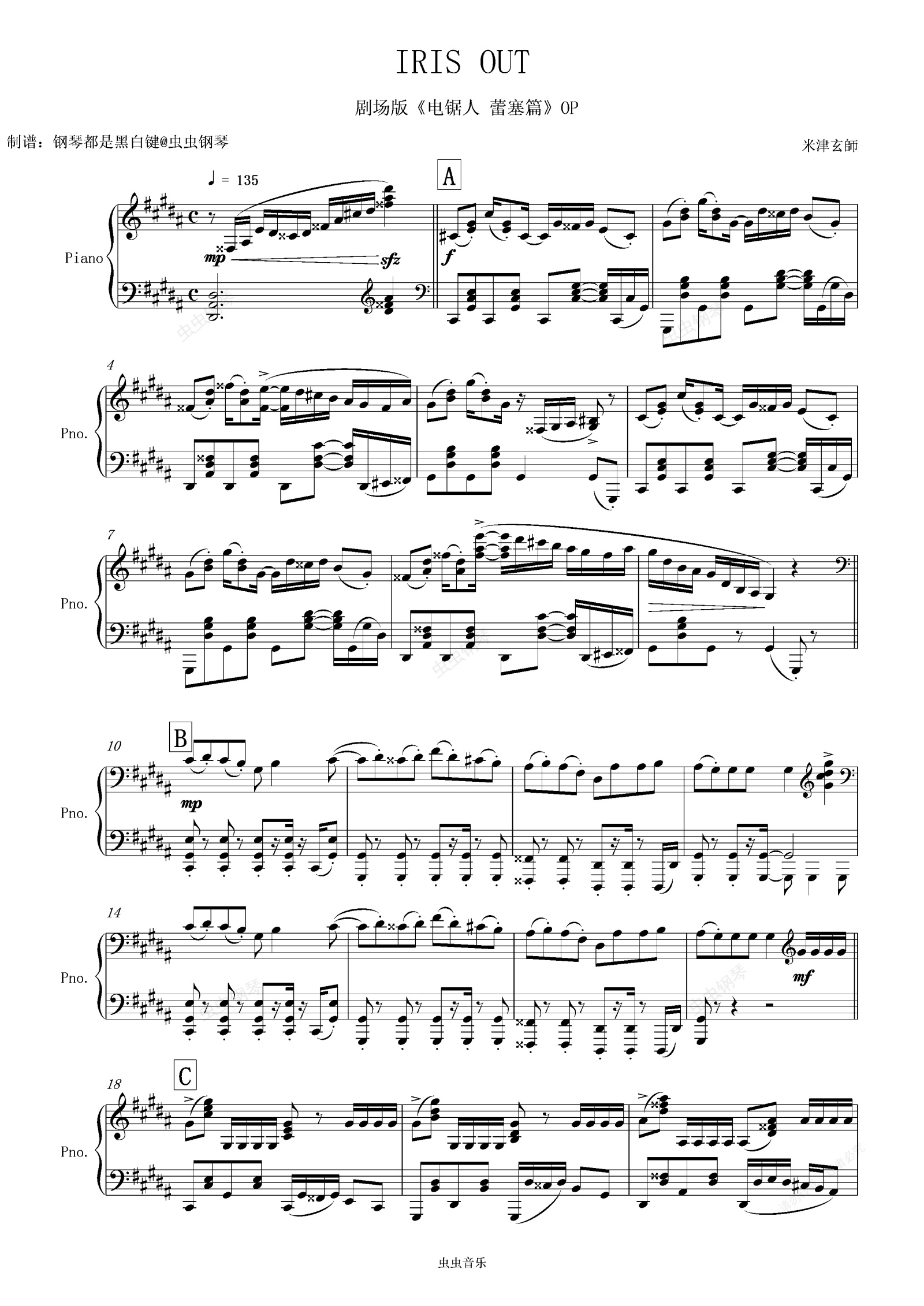钢琴谱:[Animenz] IRIS OUT-《电锯人:蕾塞编》主题曲