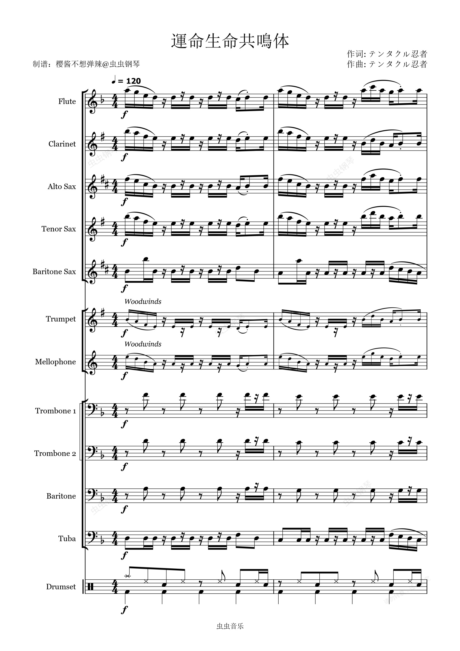 钢琴谱:運命生命共鳴体 (命运生命共鸣体) 初音ミク/テンタクル忍者