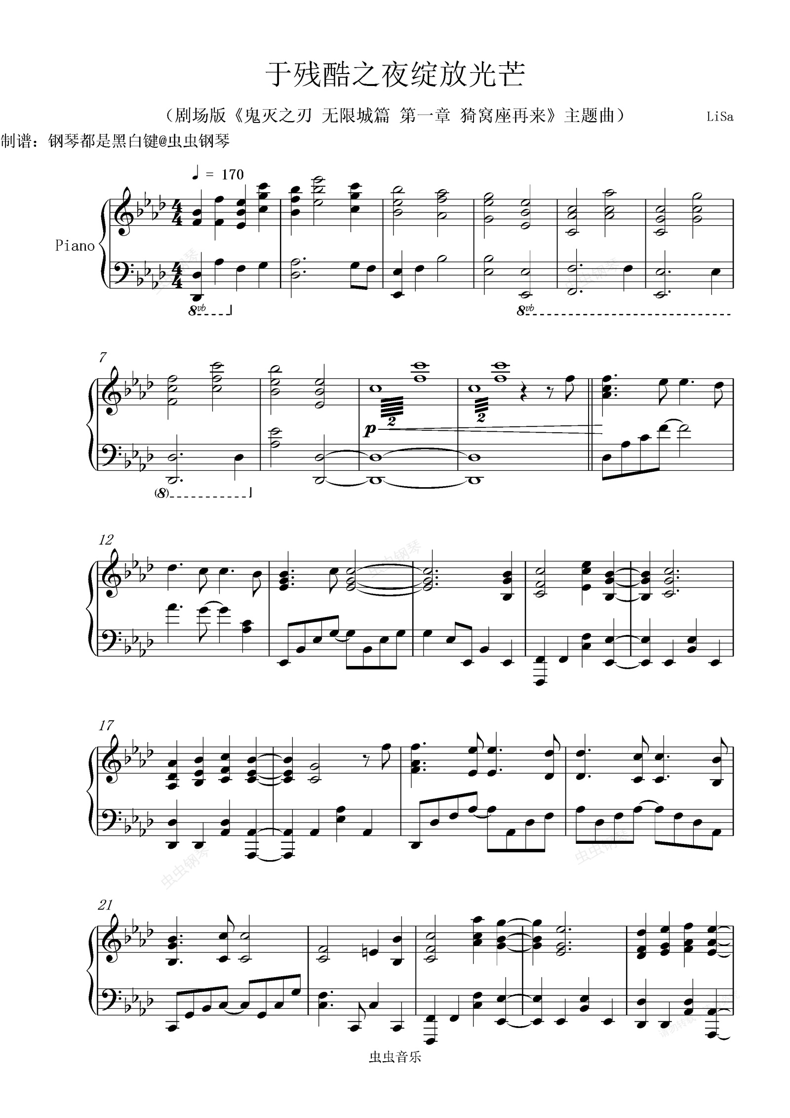钢琴谱:《鬼灭之刃 无限城篇 》主题曲 - 于残酷之夜绽放光芒【完整演奏版】