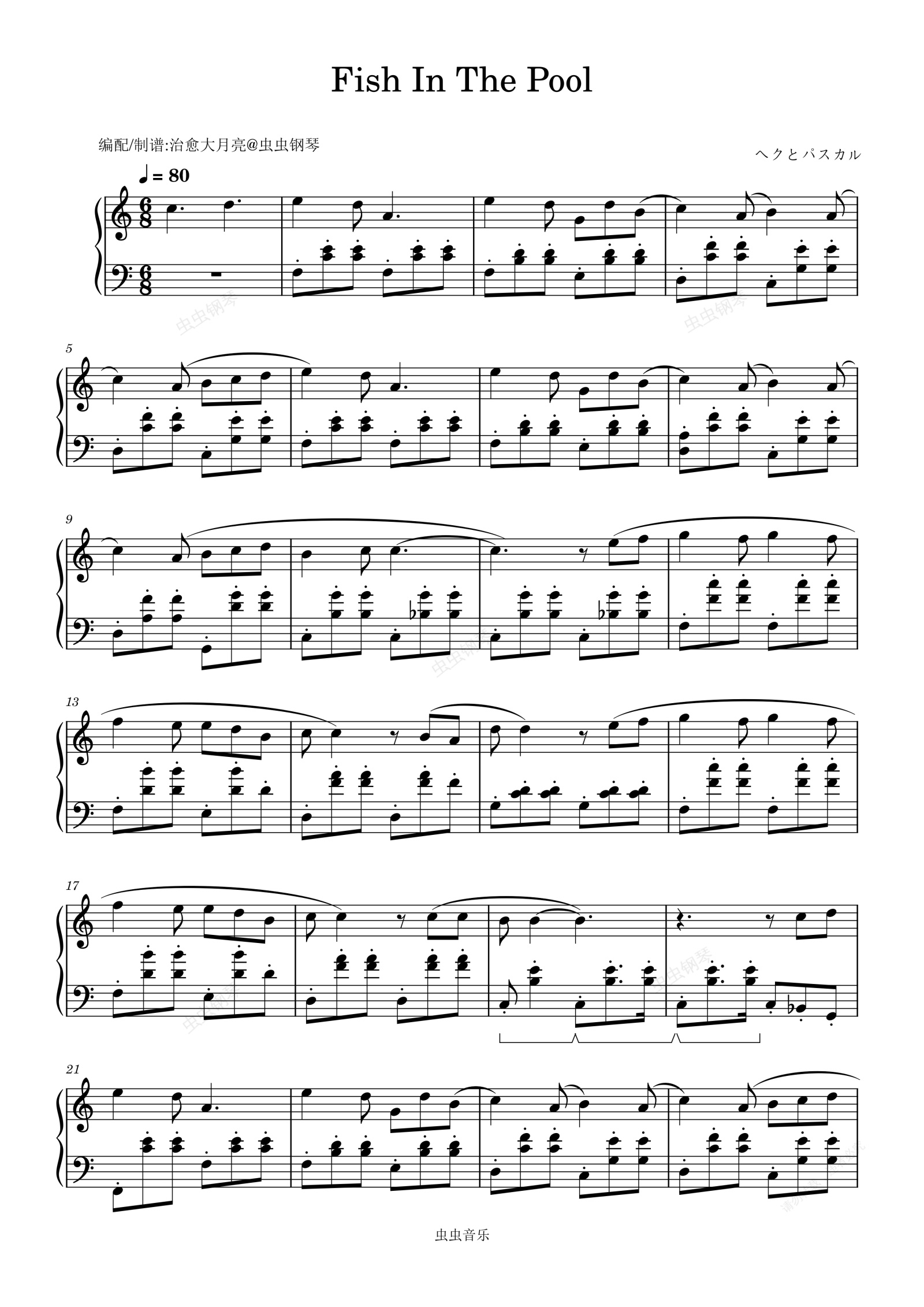 钢琴谱:Fish In The Pool 清新治愈系英文歌曲