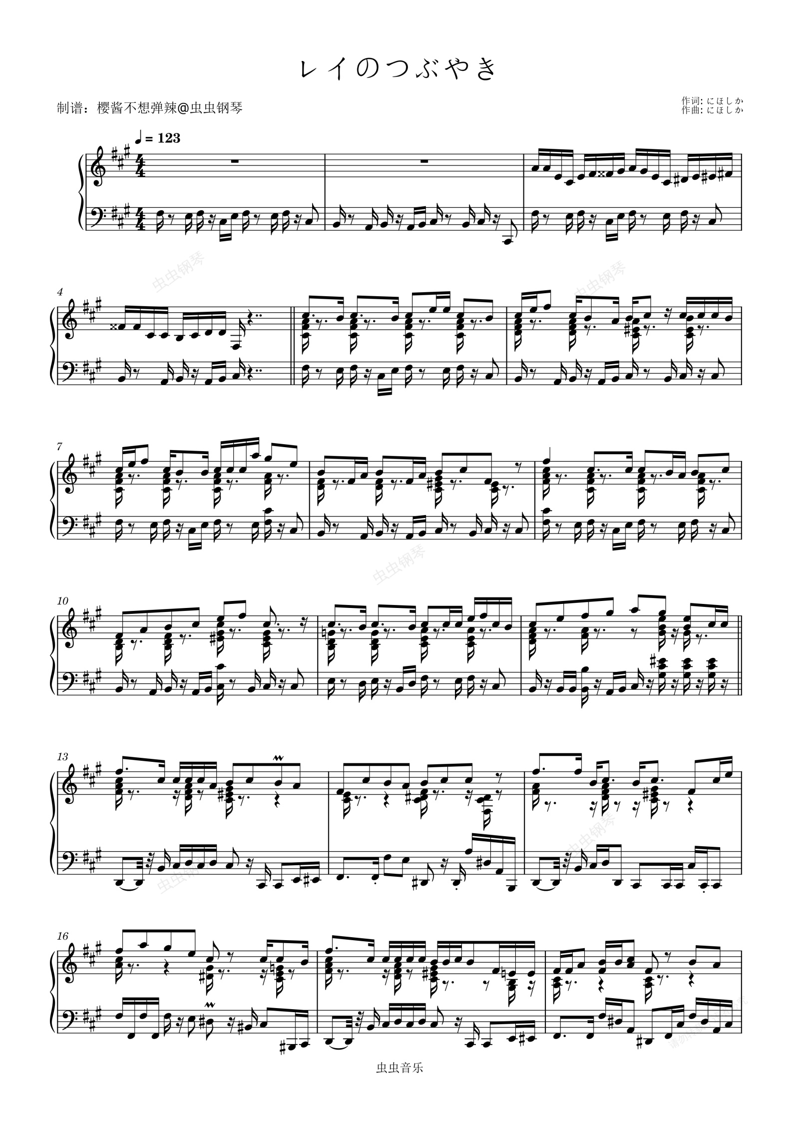 钢琴谱:レイのつぶやき (零酱的自言自语)にほしか