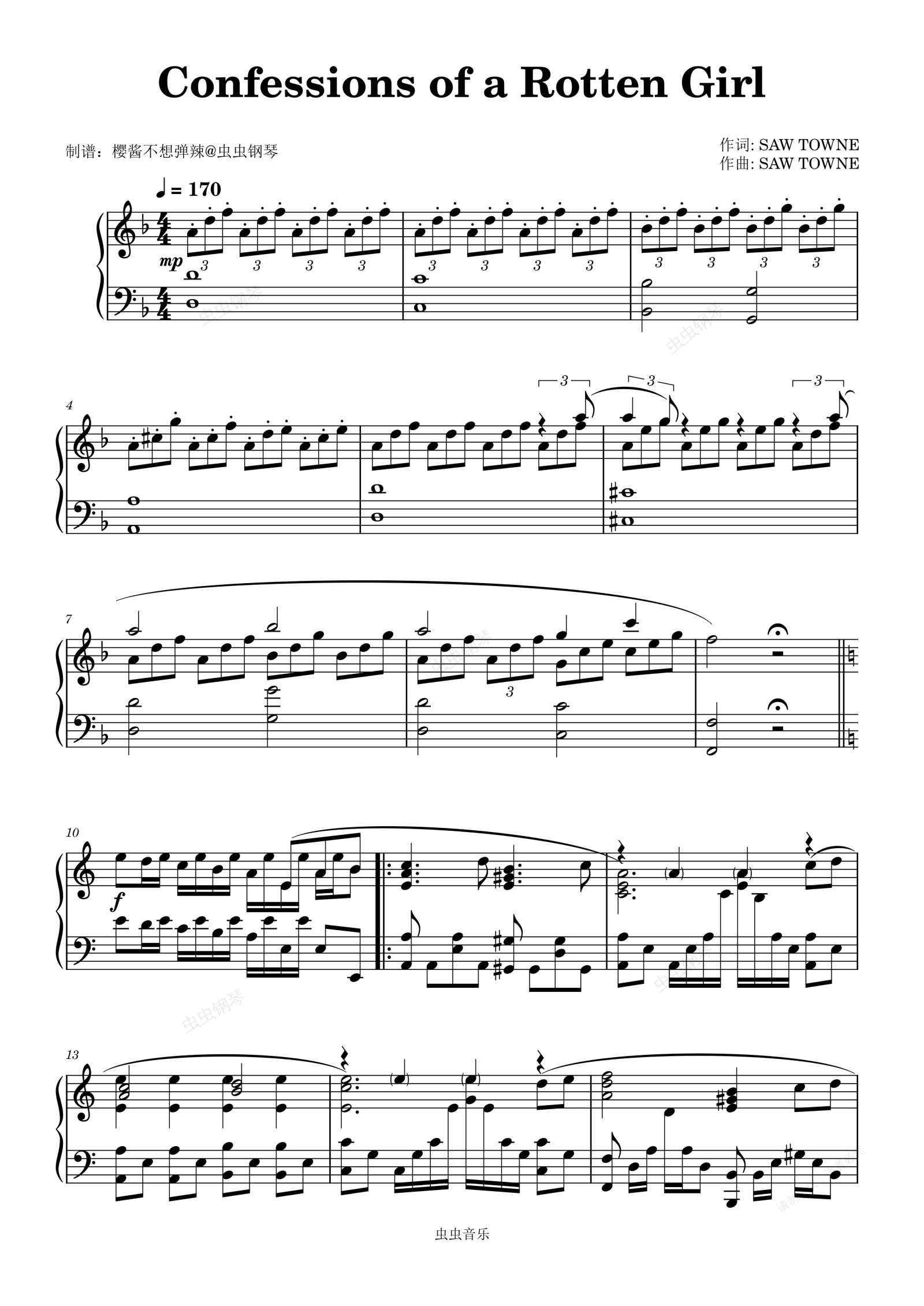 钢琴谱:Confessions of a Rotten Girl SAWTOWNE