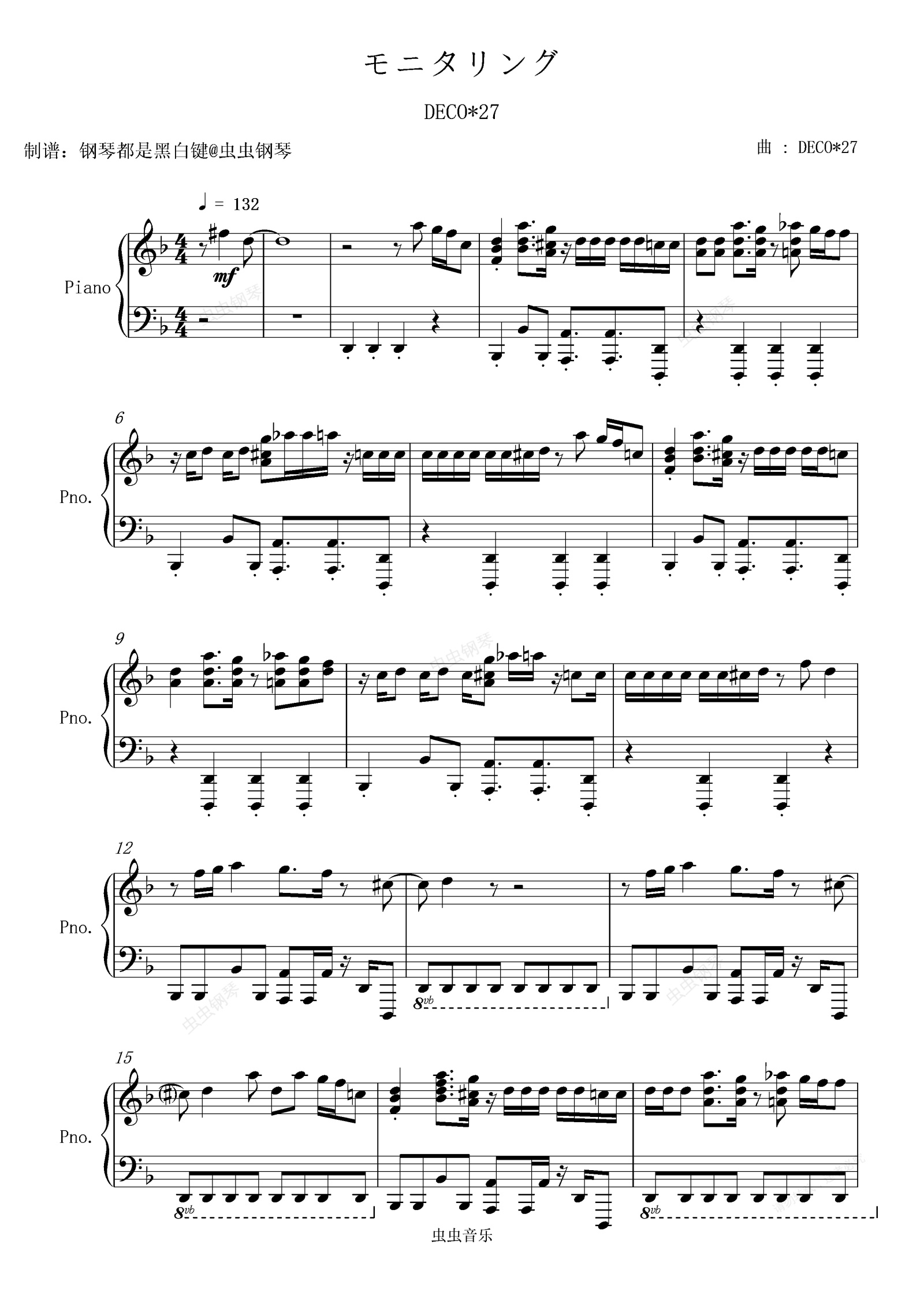 钢琴谱:[DECO*27 / 初音ミク]誓见/モニタリング