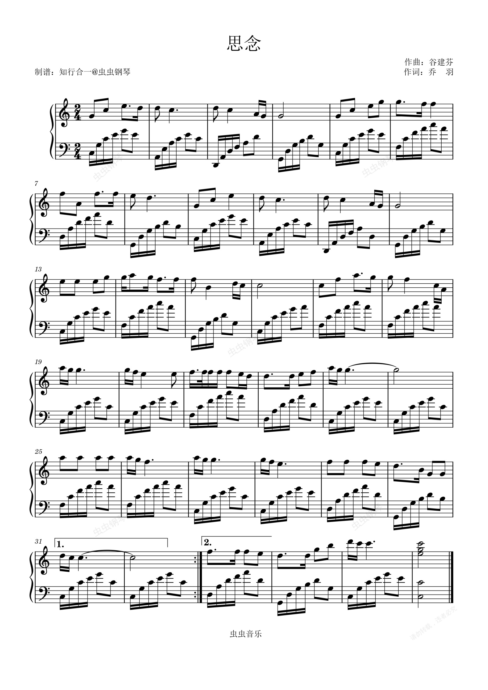 钢琴谱:思念