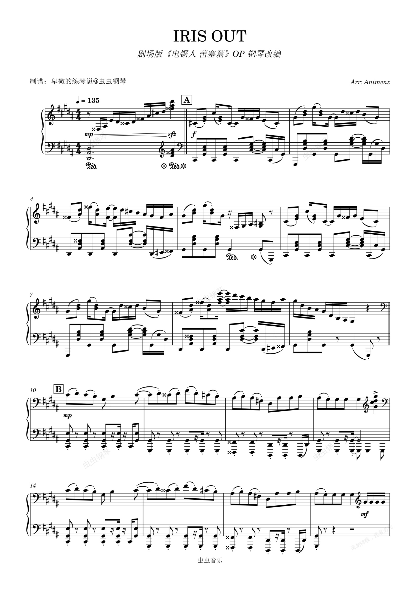 钢琴谱:[Animenz] - IRIS OUT 剧场版《电锯人 蕾塞篇》OP 钢琴改编 [转录]