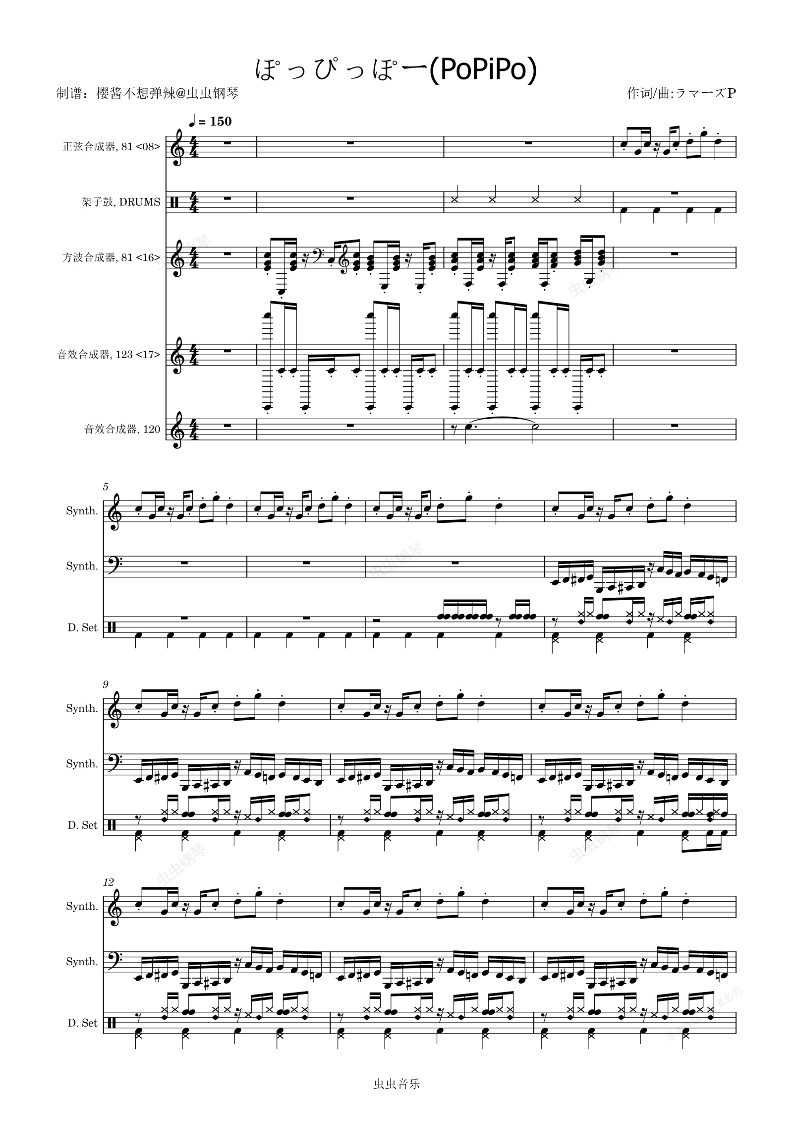 钢琴谱:ぽっぴっぽーPOPIPO蔬菜汁 ラマーズP/初音ミク