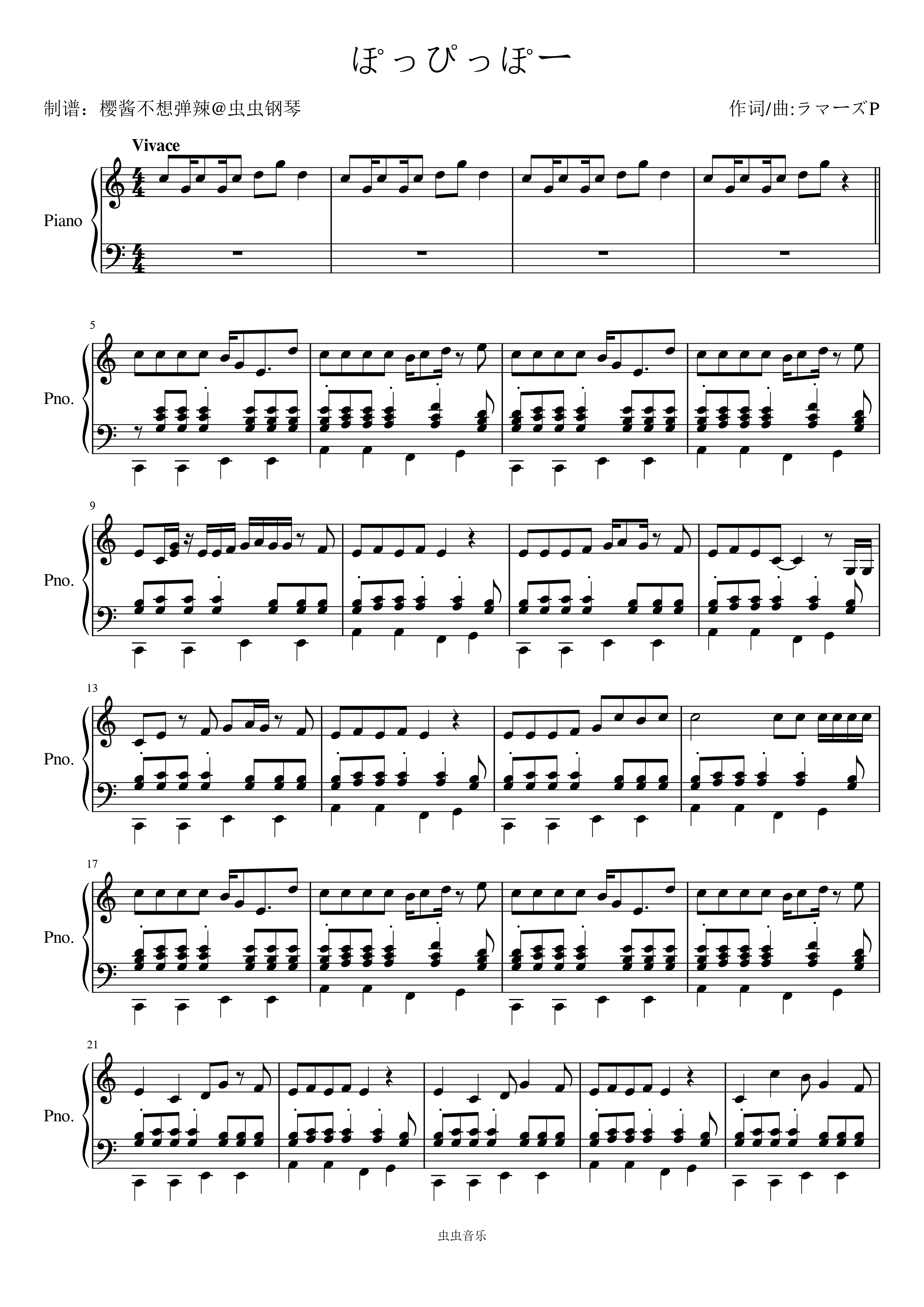 钢琴谱:ぽっぴっぽー (蔬菜汁) ラマーズP/初音ミク