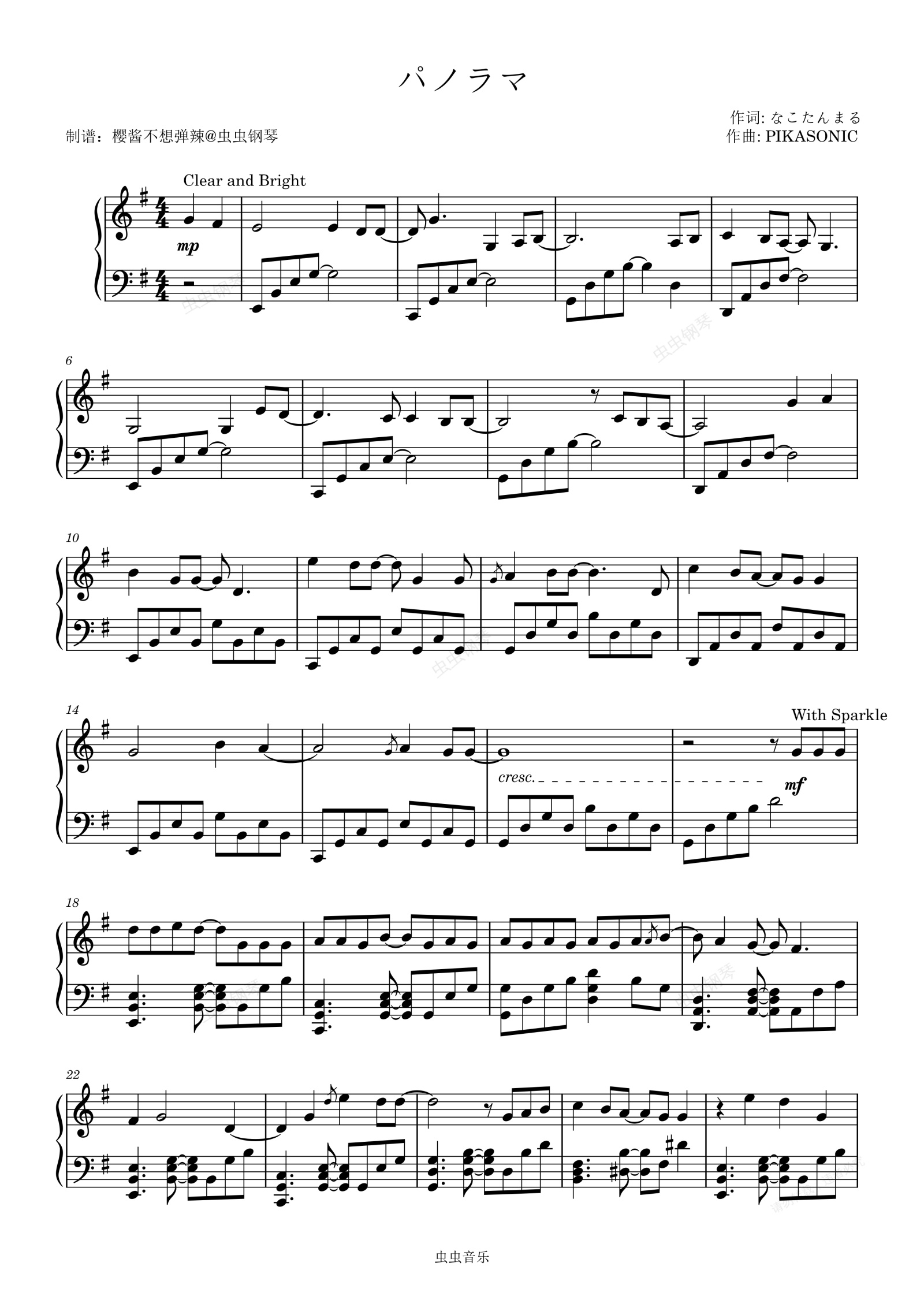 钢琴谱:パノラマ (全景) PIKASONIC/ナツメ・アリー