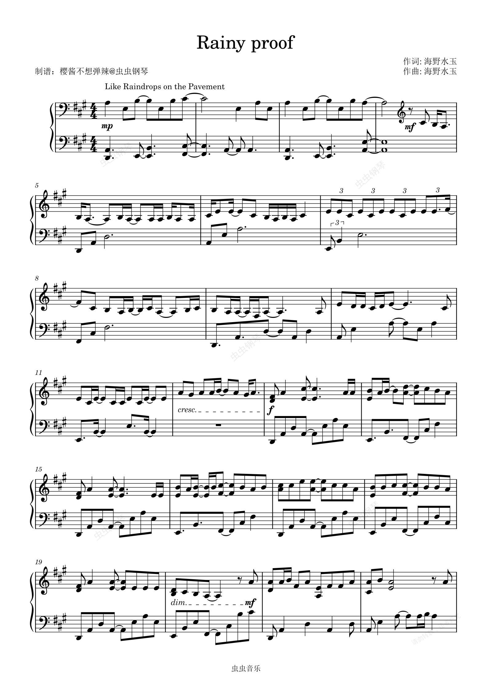 钢琴谱:Rainy proof (落雨为我证明) HACHI