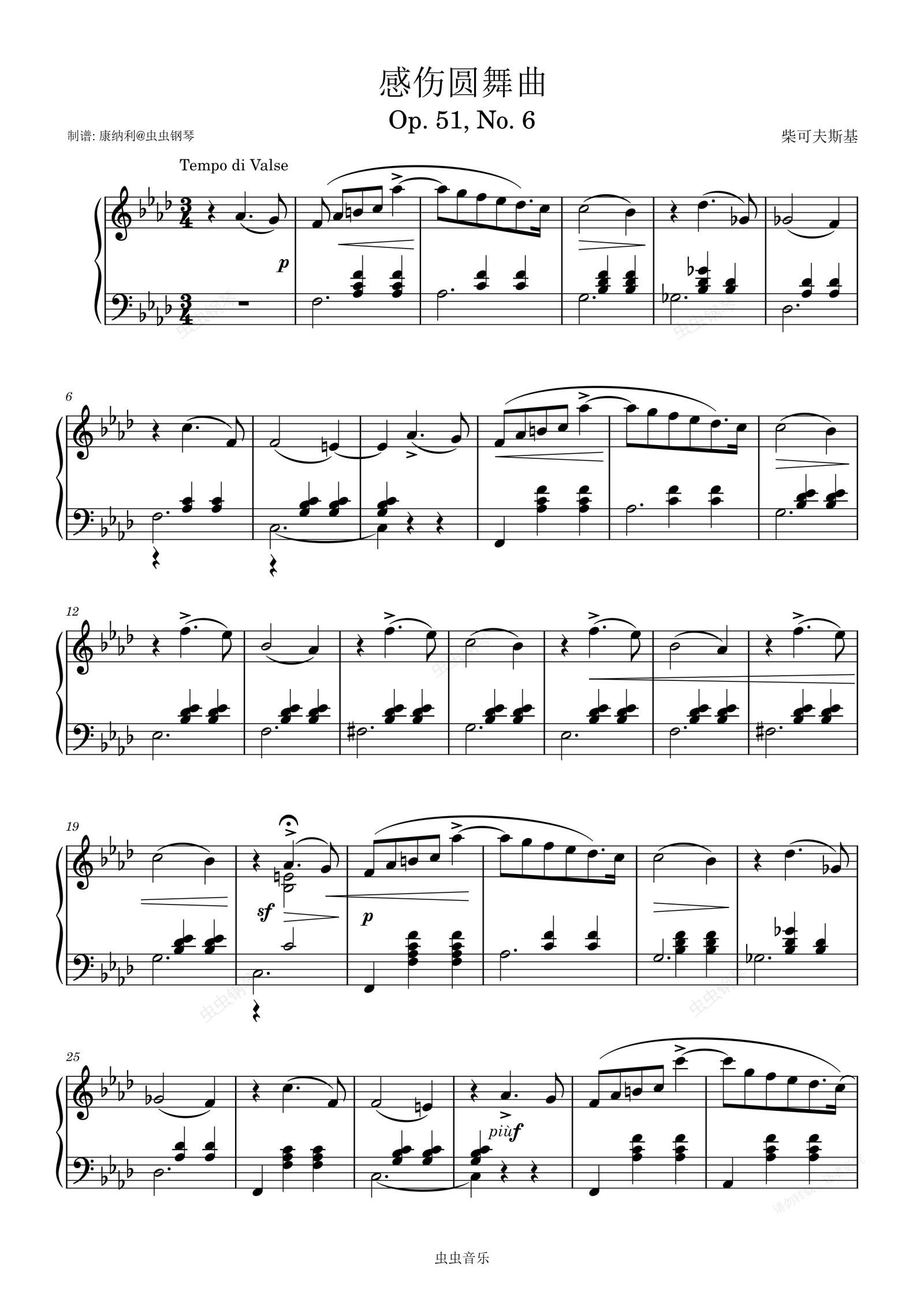钢琴谱:Valse Sentimentale感伤圆舞曲