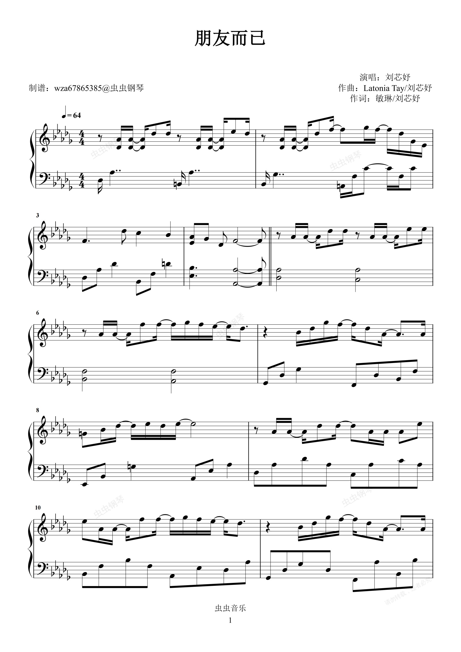 钢琴谱:朋友而已