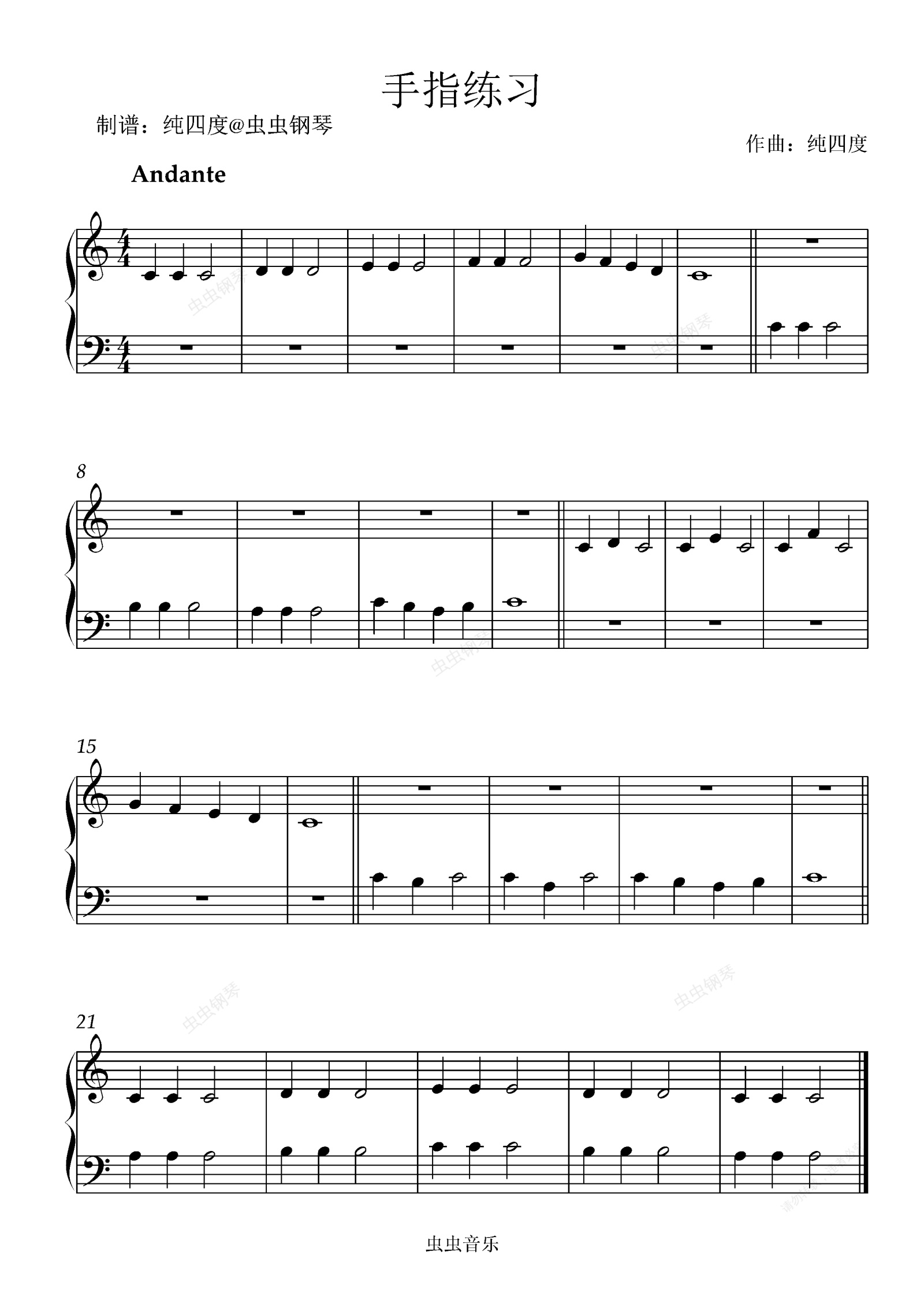 钢琴谱:手指练习(小汤1难度)「纯四度钢琴教学笔记」
