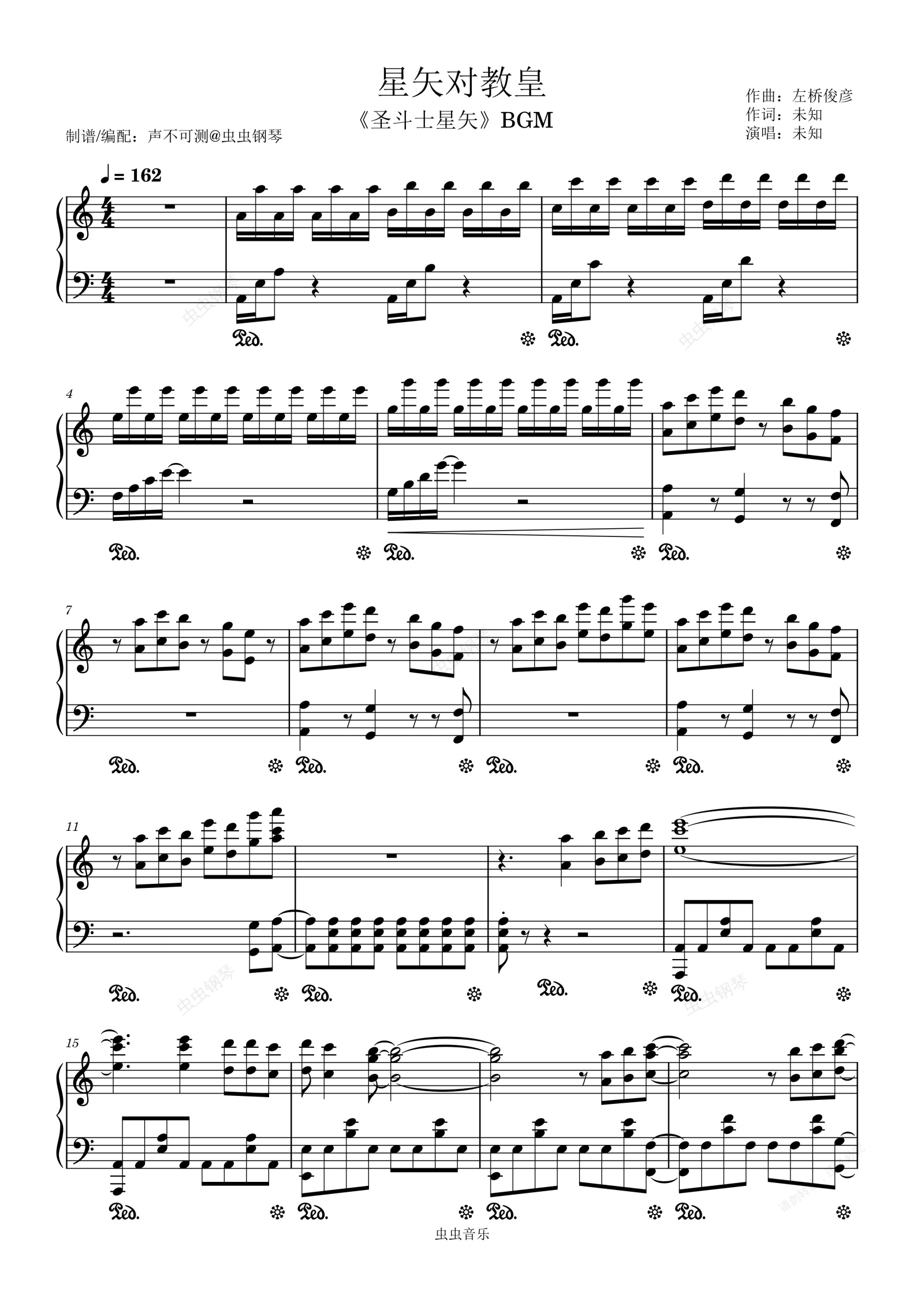 钢琴谱:星矢对教皇《圣斗士星矢》BGM - 声不可测