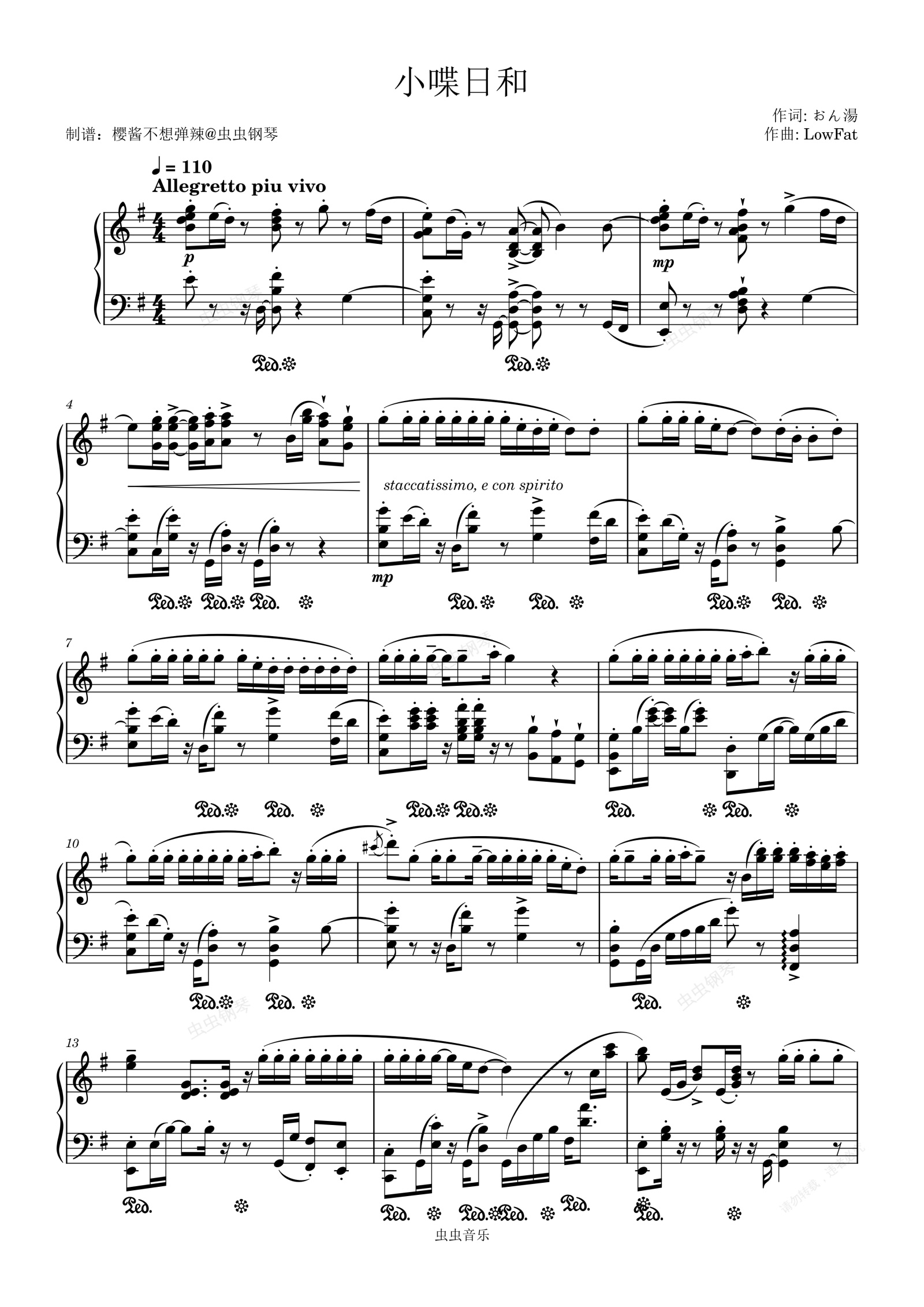钢琴谱:小喋日和 (好天气)FantasticYouth