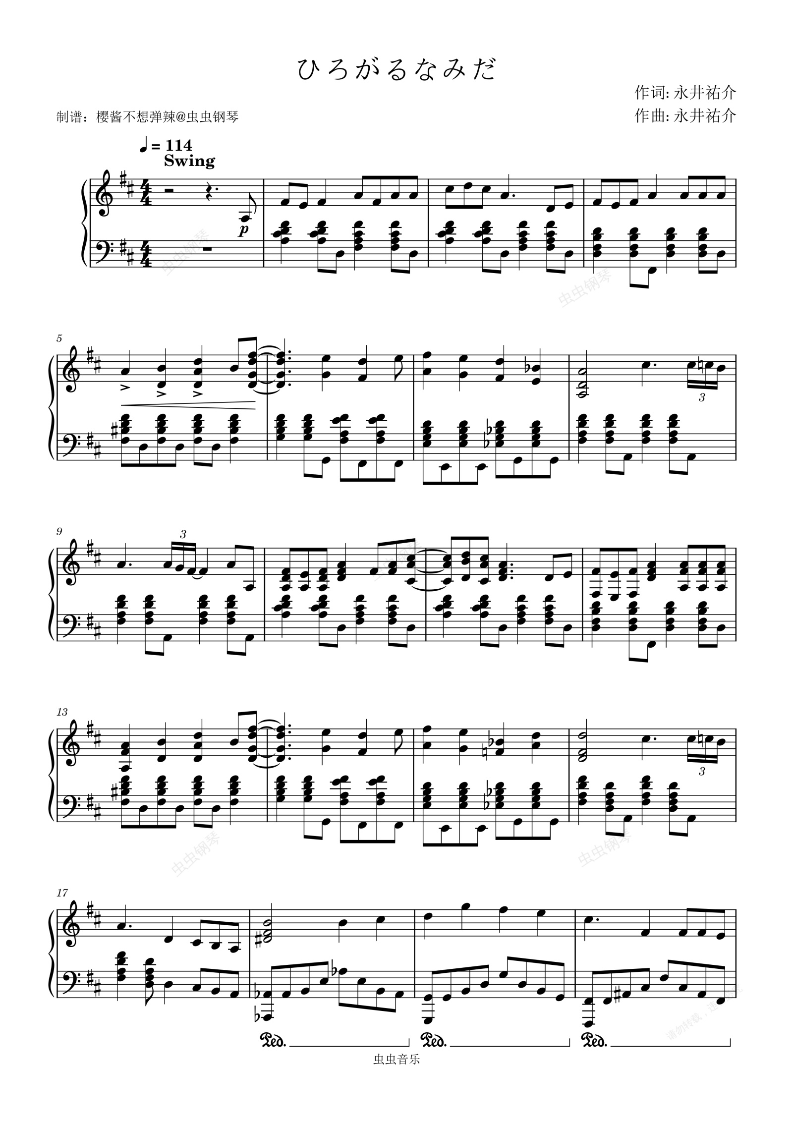 钢琴谱:ひろがるなみだ (纷扬的泪) Lamp