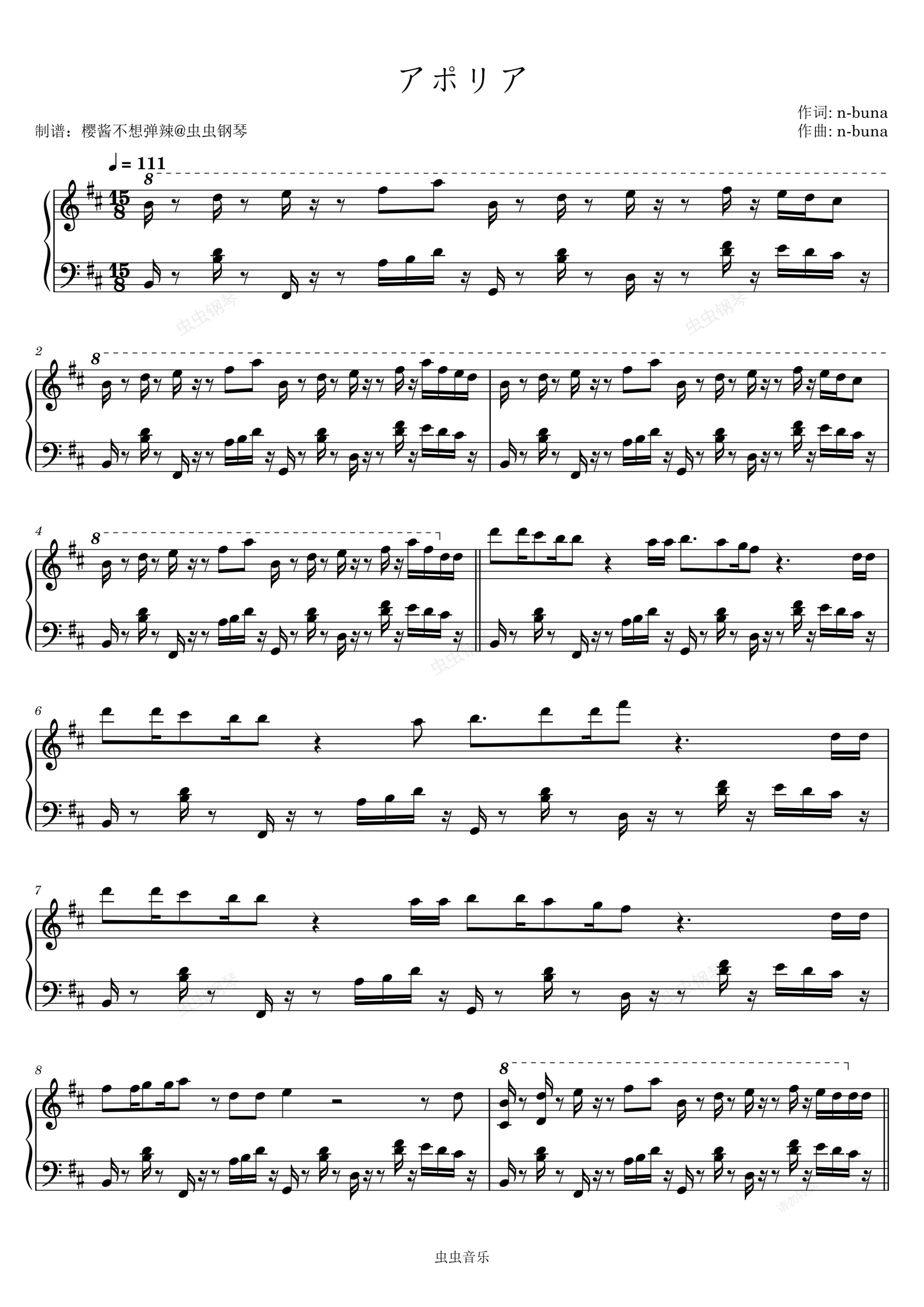 钢琴谱:アポリア (困惑) TV动画《地。-关于地球的运动-》片尾曲ヨルシカ
