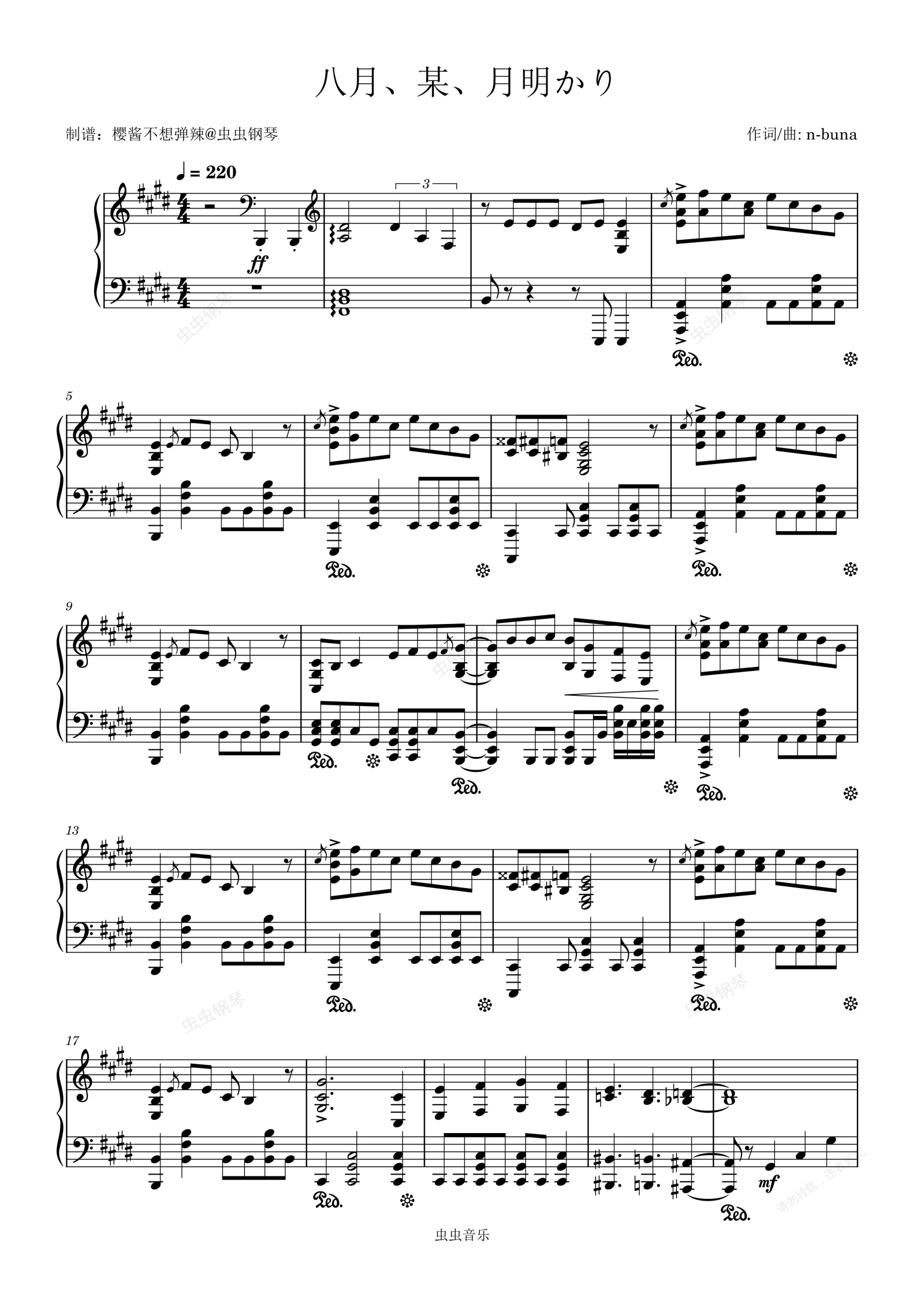 钢琴谱:八月、某、月明かり (八月、某、月光)ヨルシカ