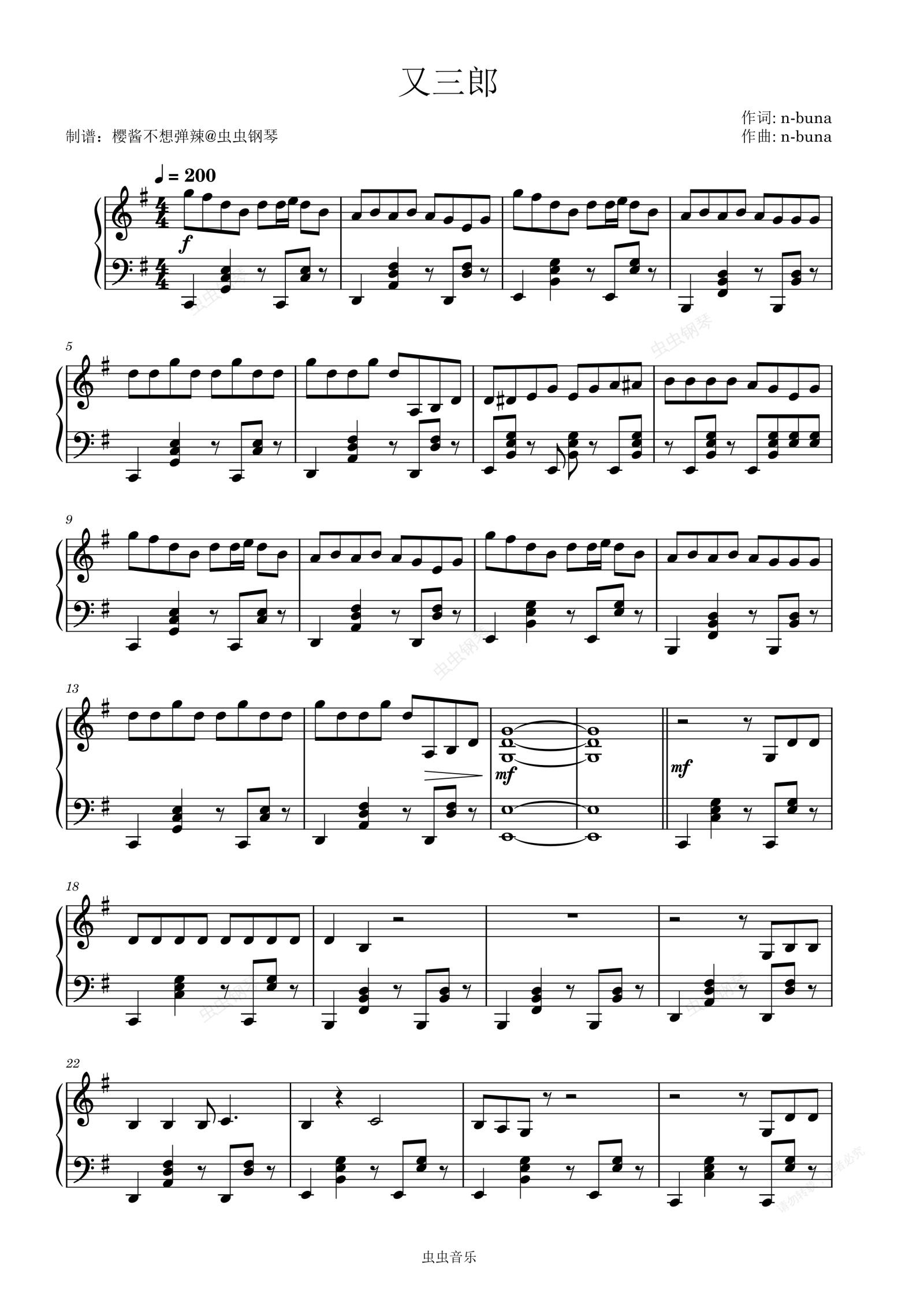 钢琴谱:又三郎 ヨルシカ