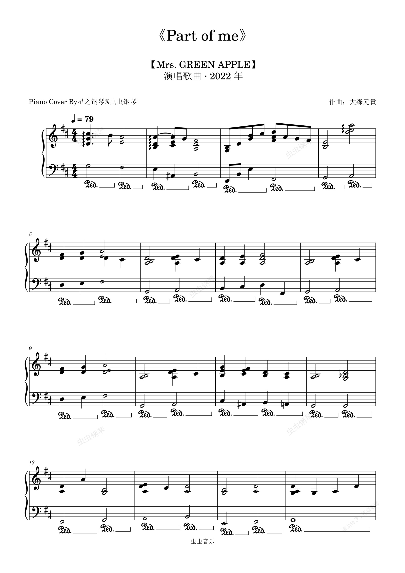 钢琴谱:【Mrs. GREEN APPLE】《Part of me》钢琴简单独奏版~星之钢琴~