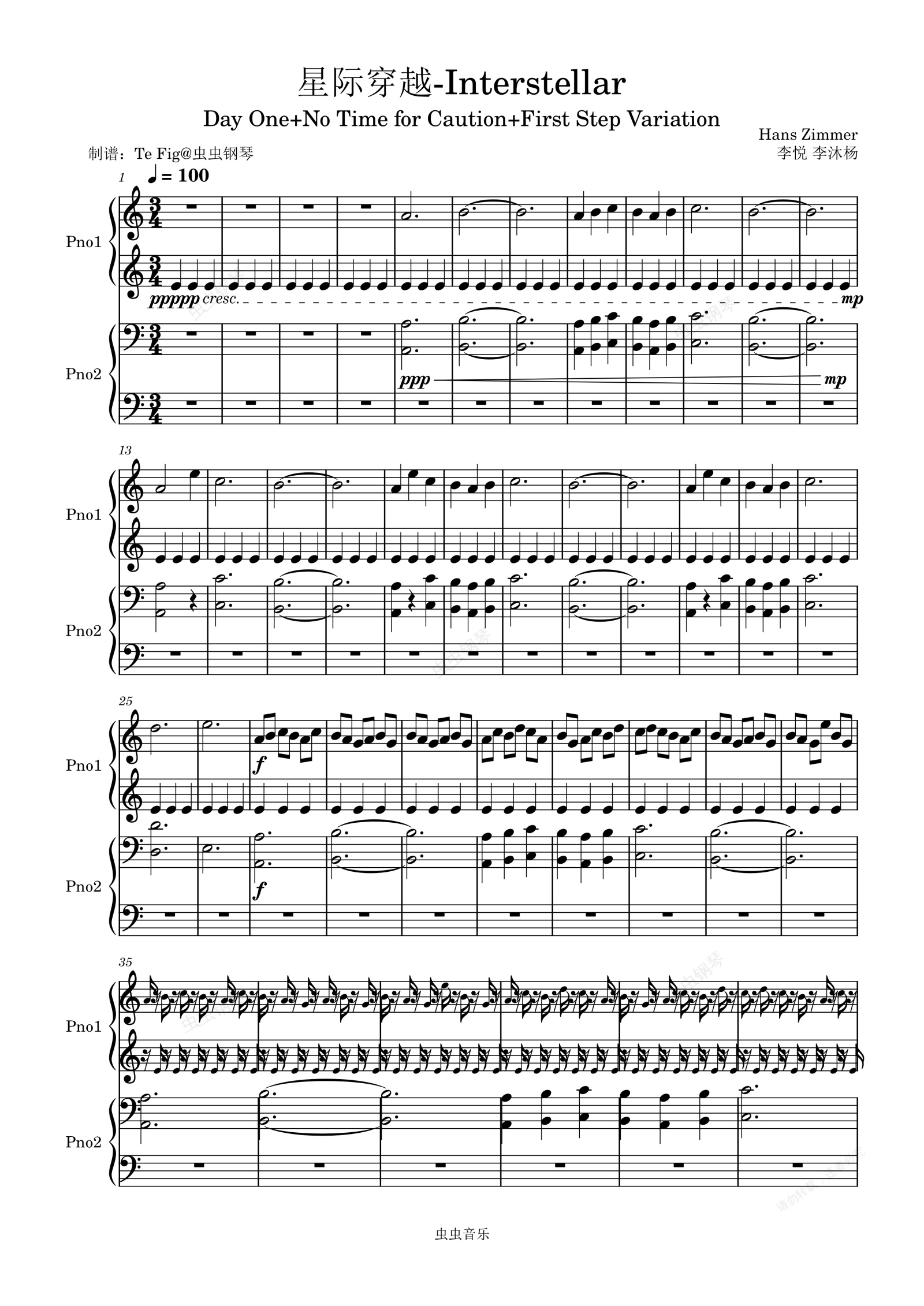 钢琴谱:星际穿越-四手联弹(儿童友好版)